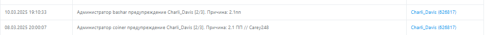 Дата и время наказания/нарушения: 10 Мар 2025