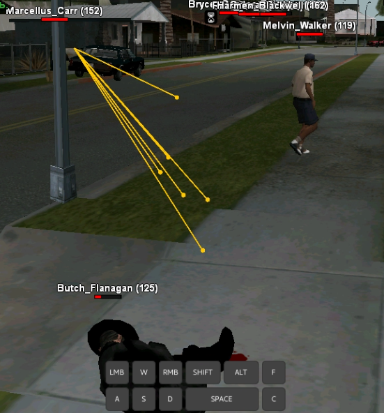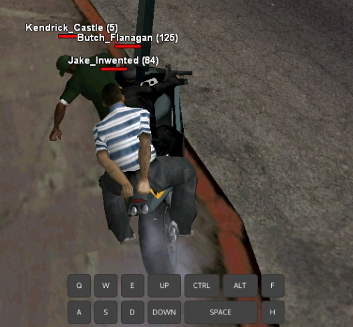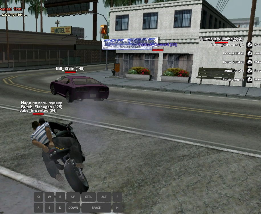 0,05 - пытаетесь перекрыть дорогу то-ли снести его с велосипеда, учтите что это было не один раз - непонятно. Зачем? тоже не понятно, видимо хотели ограбить судя по чату далее. Ну, а с игроком на велосипеде вы встретитесь немного попозже.