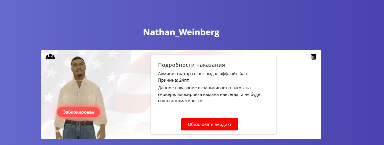 Ссылка на доказательства наказания/нарушения: