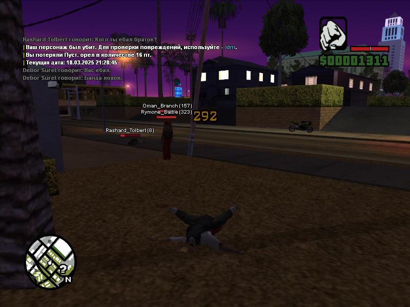 Я ничего не мог понять кто где стреляет начал стрелять по Дебору потом по мне Сэмми нашивать начал в итоге я подох