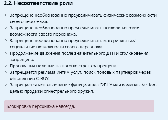 За что айбан?) И нет правила которое запрещает несколько раз убивать РАЗНЫХ человек из одной группы. Знаешь, у меня один раз уже было такое что я из семерых человек одного в первую кинул, и что дальше?) Они все всемером пришли меня убивать, у них же один живой остался, и значит он может отомстить. Два убийства с отыгровкой всё ещё не ДМ, айси довод был.Ну а стрелял то ты зачем? Мог бы на 1 разе успокоиться, получил бы 2.3, но щас ты конкретно по заслугам айбан получил