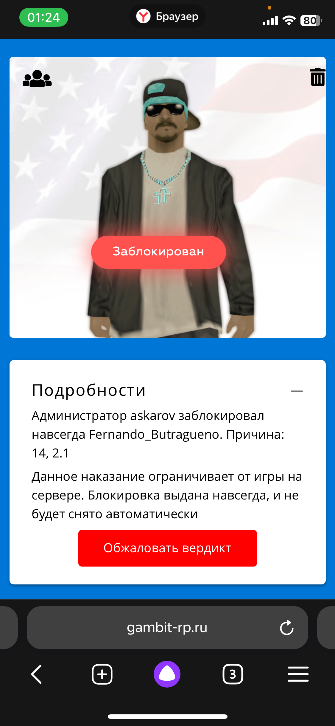 https://forum.gambit-rp.ru/threads/534377/ - знакомая жалоба?