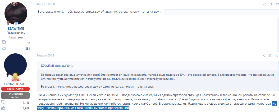 Когда мы подали жалобу, узнали, что у администратора якобы не сохранился фрапс с этой ситуацией, несмотря на то, что всё было абсолютно очевидно. Это и подтверждает, что бан был выдан с целью прикрыть их собственные ошибки и поднять своих игроков, скрывая нарушения с их стороны.