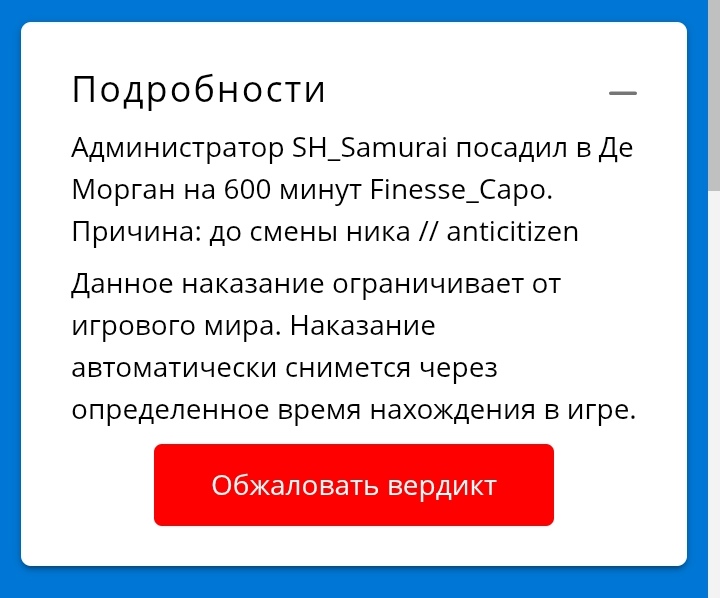 Суть жалобы: https://forum.gambit-rp.ru/threads/534398/