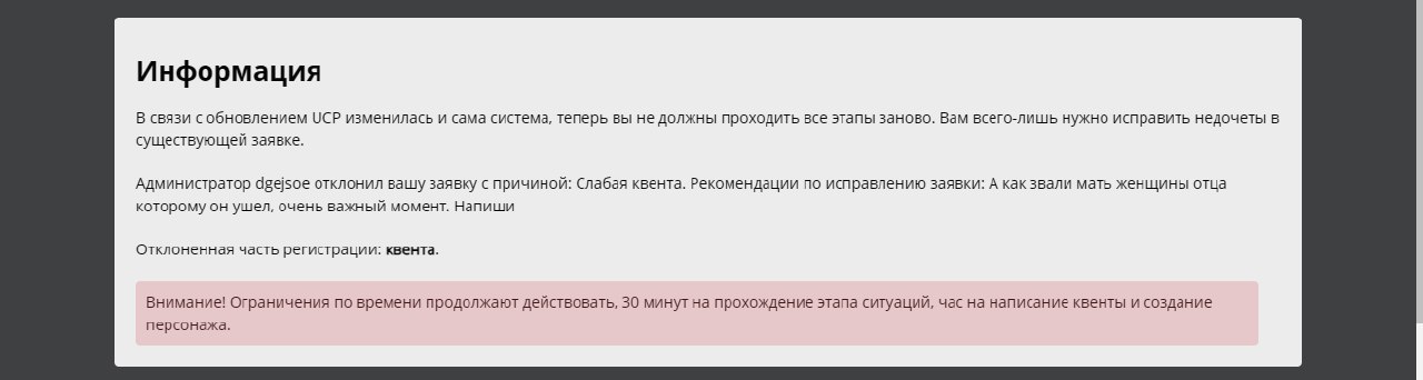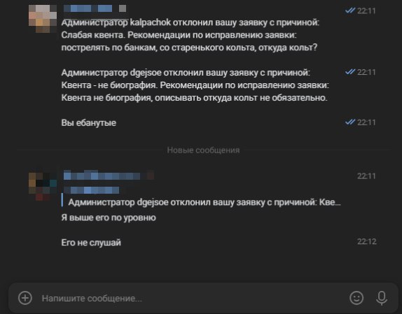 Суть жалобы: не понимаю почему он назвал мою мать толстой, не понимаю почему он не читает полностью квенту, не понимаю почему он спрашивает откуда кольт а другой администратор пишет убери откуда кольт