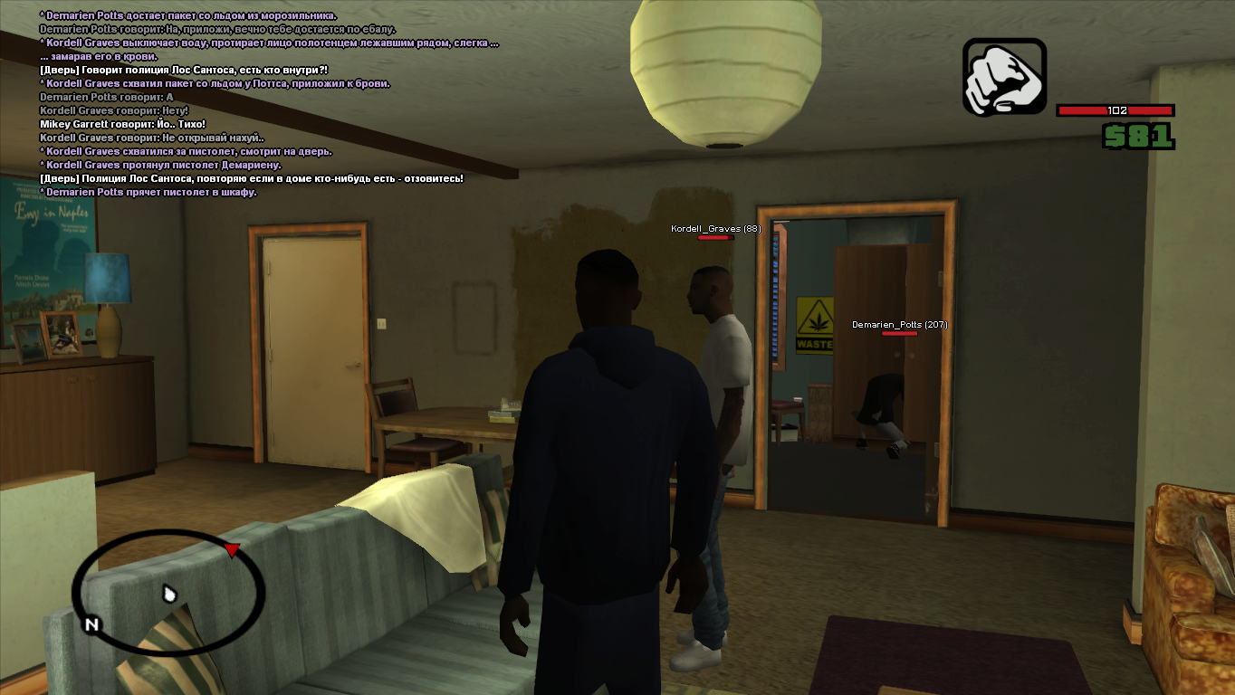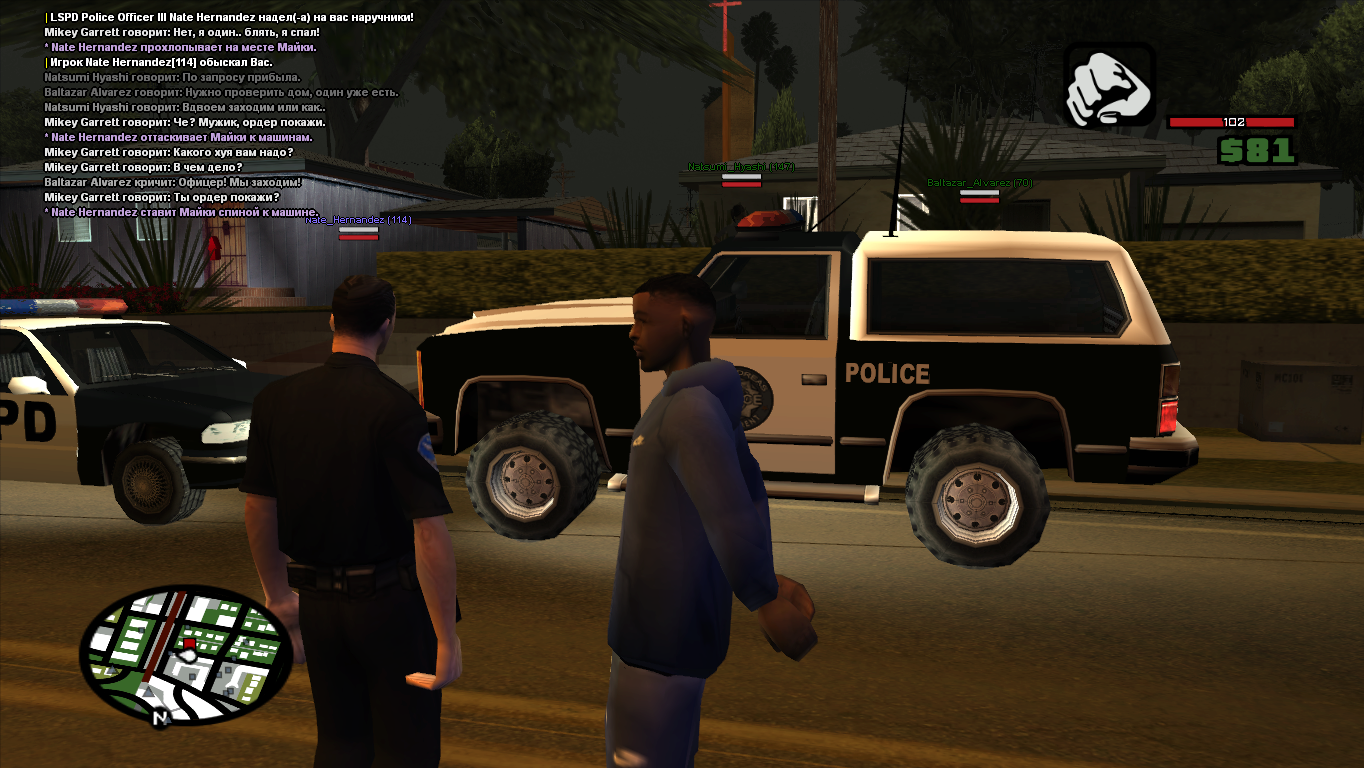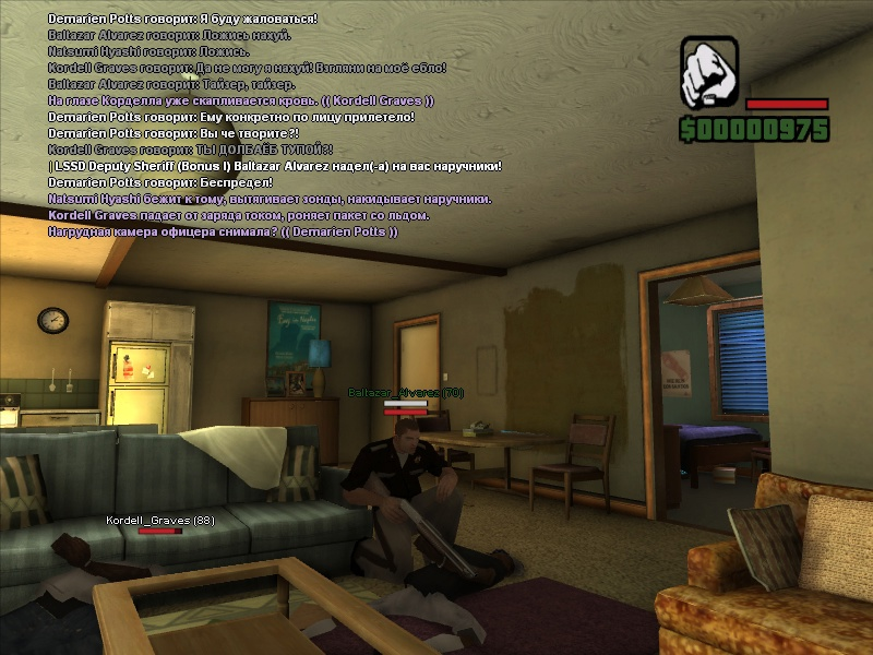 Произошла ситуация, где к нам приехали игроки с другой фракции, выскочили на нас со стволами. Играли с ними, приехал 1 полицейский и сторона налетчиков открыла огонь по нему. Мы все разбежались. Я, Kordell Graves. Demarien Potts зашли в дом.