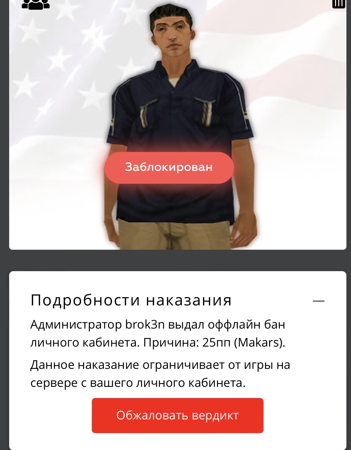 Ссылка на доказательства наказания/нарушения: