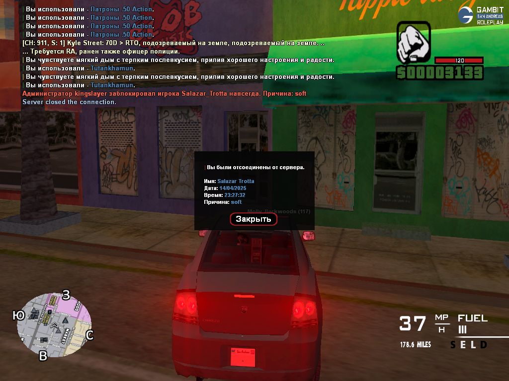 Суть жалобы: Какой софт... где софт... Спокойно ехал, ниче не делал. Зашёл раз в год, зачем гейм обрывать.