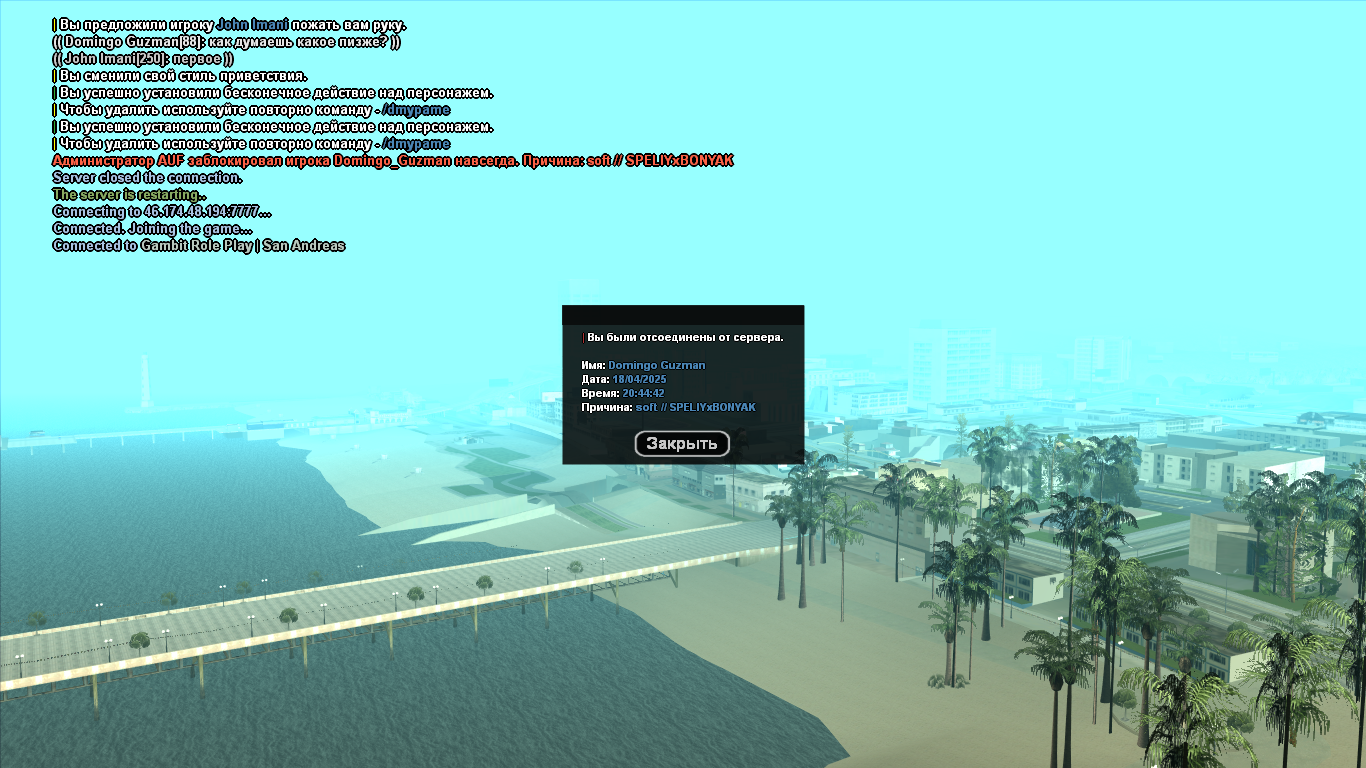 Суть жалобы: Бегу банихоплю со спавна до магазина великов, и на - бан. За какой софт так и не понял.