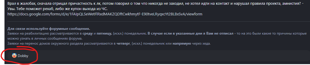Суть жалобы: Прошу данного администратора прощения, прошу у ВСЕГО гамбит роле плей прощения за свое наглейшее поведения, и я не шучу, говорю от чистого сердца. При попытки пройти ребку я нагрубил проверяющему потому что был пьяным, а когда хотел извиниться, я уже был в чсе :( Прошу прощения и шанс, к тому же скоро воротиться мой любимый друг и блогер Никита Труфолсик которого я люблю