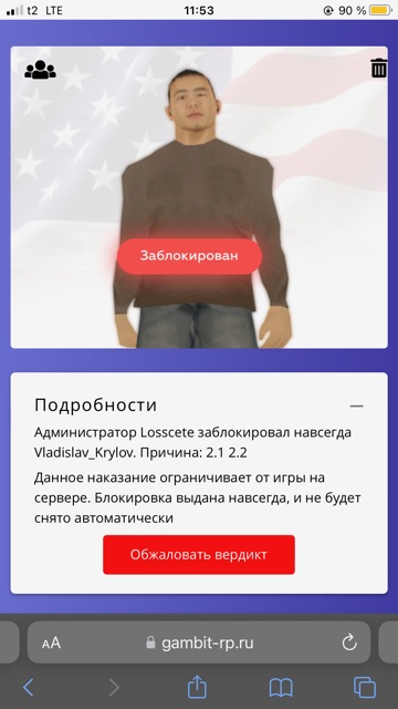 Суть жалобы: Здравствуйте любимые администраторы! Хочу признать свою вину, за совершенное действие. Да, я виноват, больше такого не повториться. Разбаньте пожалуйста, я вас прошу.