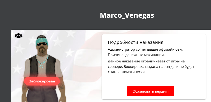 Суть жалобы: Приветствую, хочу запросить амнистию для двух своих аккаунтов Marco_Venegas и Kadaris_Chandler, признаю в том что совершил нарушение и готов ответить за это