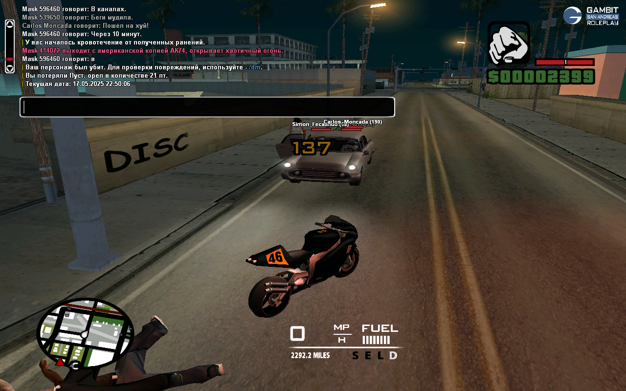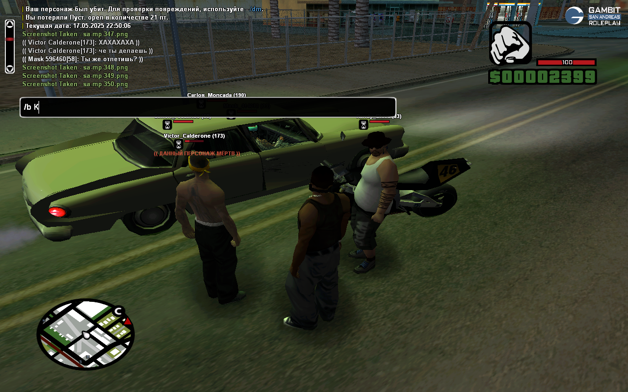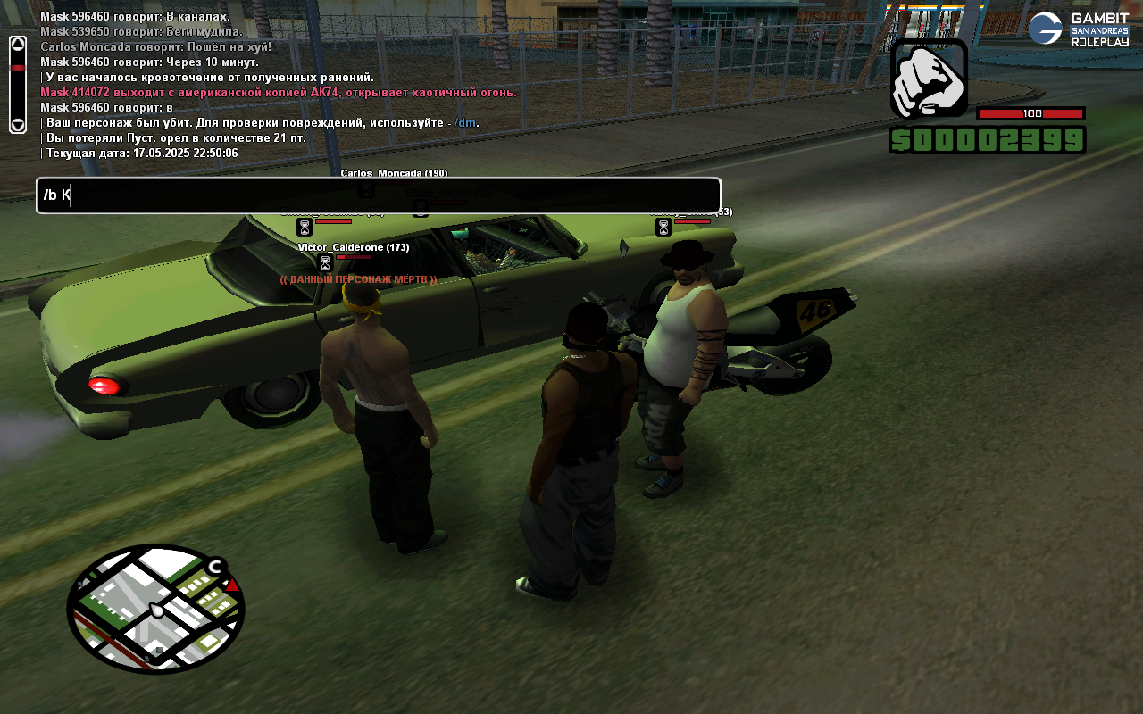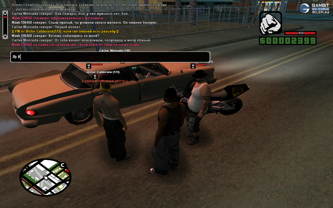 Объясняю ситу, мы рисуем граффити всё по РП. К нам подьезжает сопляк, одного из отцов Харпис. Угрожает смертью и так далее, я в ответ говорю Дословно перевожу "Опасный, но безопасный" После Челики подьехали, после оскорблений в свой адрес и расстреляли нас. Хотя угрозы жизни не было. Мы предложили устроить разборку, но нас убили.