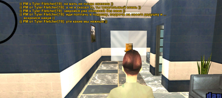 2. Уже вдвоем мы хотели найти эту важную персону и поговорить, но этот персонаж решил забежать в интерьер ЦПД и написать мне в пм, "мол че ты ис в оос переводишь нытик".