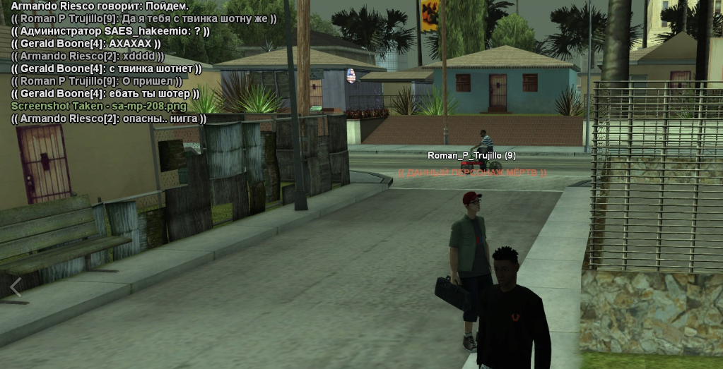 подъезжает к нам игрок роман трухилья, говорит идите заебашьте копов - странно? я говорю если надо иди ебашь сам, он говорит что мы ссыкуны. мы намекнули ему что не хотим иметь с ним контаков и сказали ему чтобы он уезжал, на что он отвечает ИДИ НАХУЙ человеку с автоматом в руках, тоже пг. мы проигнорирвоали это, он уехал. дальше стоим, общаемся на сс. видим мою знакомую с которой я ранее играл сделки и другое. пообщались, видим как он прокатывается в маске, на такой же машине и в таком же скине. соотвественно я сразу просек что это он и просек что намечается что то неладное, сказал быть своему товарищу на готове и держать пистолет при себе, вероятно парень хотел нас пригреть чутка