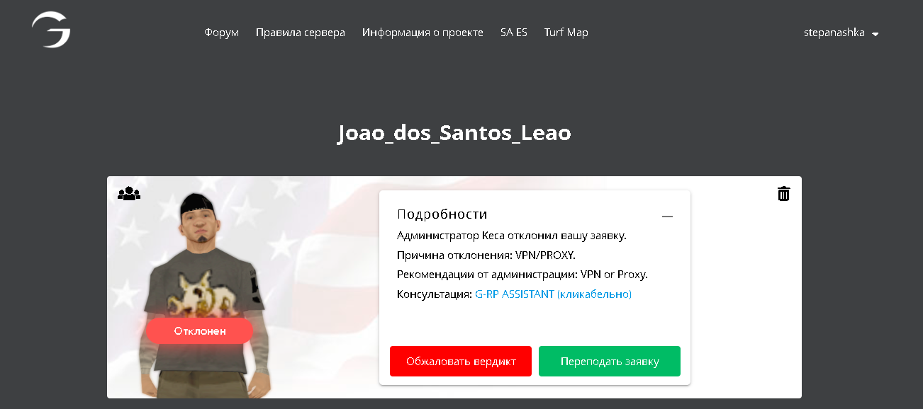 Суть жалобы: Хотел бы узнать точную причину отклонение персонажа, вместо: "VPN OR PROXY". Не все люди знают расшифровку, разве так сложно описать проблему дабы человек не мучался? Основная цель администрации, как мне кажется, помогать людям и обьяснять им причину отклонение так, чтобы они смогли поменять что-то и изменить. Зачем идти на столь важную посаду с таким отношением? Я написал в ВК группе поддержки, жду ответа больше часа, за то время можно было бы раз 20 рассмотреть причину и написать по новому неподходящее! Спасибо за внимание, может быть я чего-то и не знаю, просто реально уже взбесило, нету сил держать это в себе, извиняюсь.
