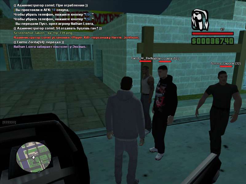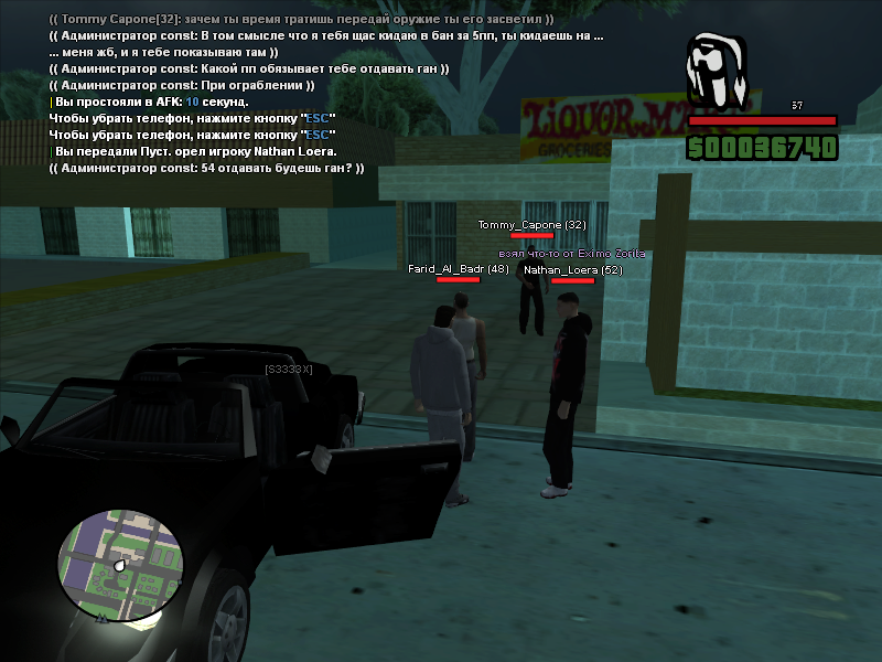 я понял о чем ты. 8 число, ночь. на грув стрите была перестрелка, там перестрелялись, я просто хожу рядом с игроками и свапаю дигл на несколько секунд, в меня начинают целить, валить на землю и грабить. у меня был лиценз дигл и они потребовали его отдать, я позвал администратора, он также потребовал его отдать пацанам