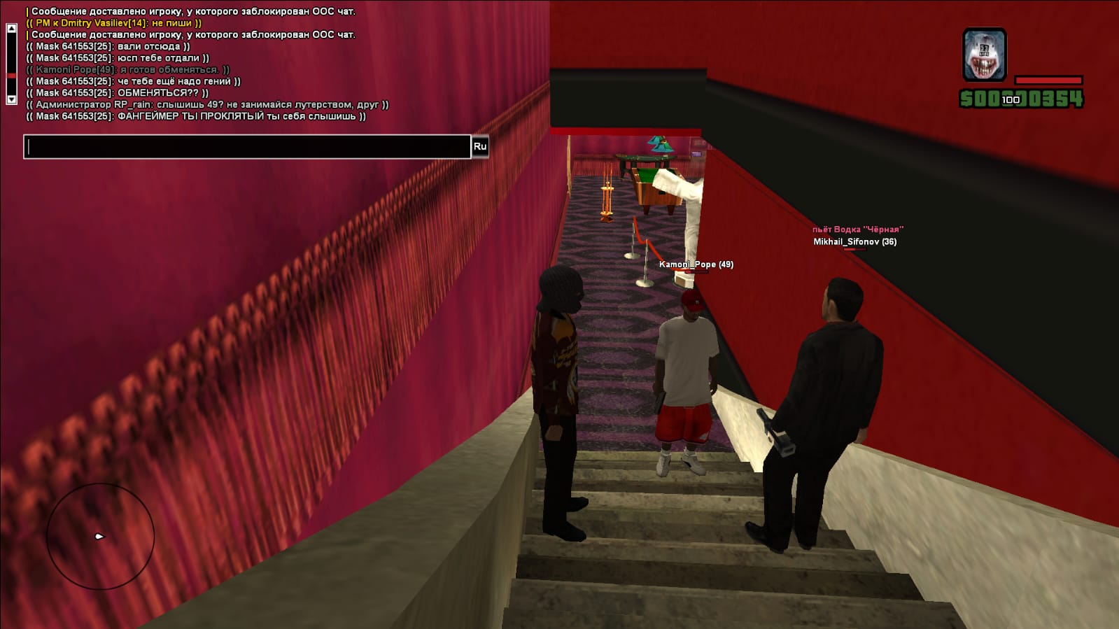 Суть жалобы: вообщем данного игрока заводим в наш клуб и ведём в кабинет продать оружие после его перевода денег моему соигроку мы направляем на него оружие он резко без отыгровок начинает убегать и наносится по всему клубу чтобы найти укрытие на него был направлен ствол это есть в отыгровках, забегает на второй этаж в укрытие и там меня без отыгровки килляет до второй стадии, после этого убивает моего соигрока а третий вылетает тот начинает требовать калаш третий наш человек заходит и его валят он забирает у него юсп и требует КАЛАШ на что админ отвечает что это лутерство, это доказывает что он играет ради ганов и фарма потом он просит обменяться, здесь я предоставляю скрин с моей стороны а также два скрина со стороны моего соигрока. Прошу вернуть потерянный мне дробовик (в техе) а также взятый у моего соигрока Mikhail_Sifonov пистолет с глушителем, скрины будут ниже.