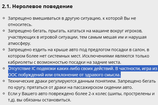 Суть жалобы: Доброго вечера. Я не настолько частый посетитель сервера, коим являются остальные, но всё-же бывает выпадет момент, что могу зайти. И сегодня выпал такой же момент. Я зашёл на сервер, немного побегал, телепортировал авто, поехал кататься. Заехал на Гентон и мне на голову падает самолёт АТ400, о чём я сообщаю администрации в репорт, дабы его удалили/зареспавнили. В ответ на свой репорт за мной в спек зашли три администратора, решившие подтянуть меня за носимый бронежилет, пытались притянуть правило 2.1, которое никак не регулирует обращение с бронежилетом. Видимо, решили сочти это за неролевое поведение, но в чём оно заключается? В том, что я покатался ~10 минут на автомобиле и на мне был бронежилет?