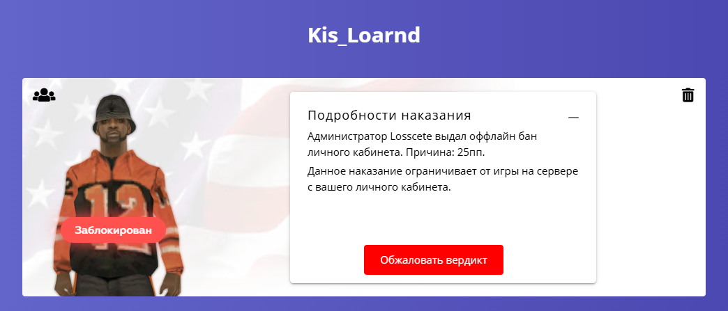 Ссылка на доказательства наказания/нарушения: