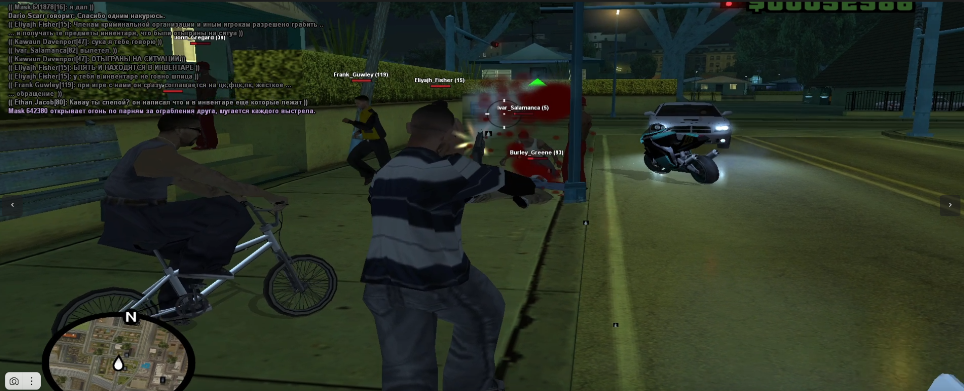 Chip Sanders - угроза жизни оружием. его друг в маске который был на мотике тоже упал во 2 т.к бил моих друзей и учавствовал в этой всей ситуации.