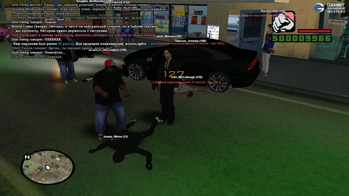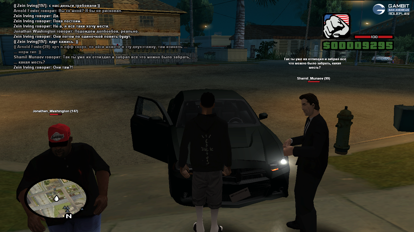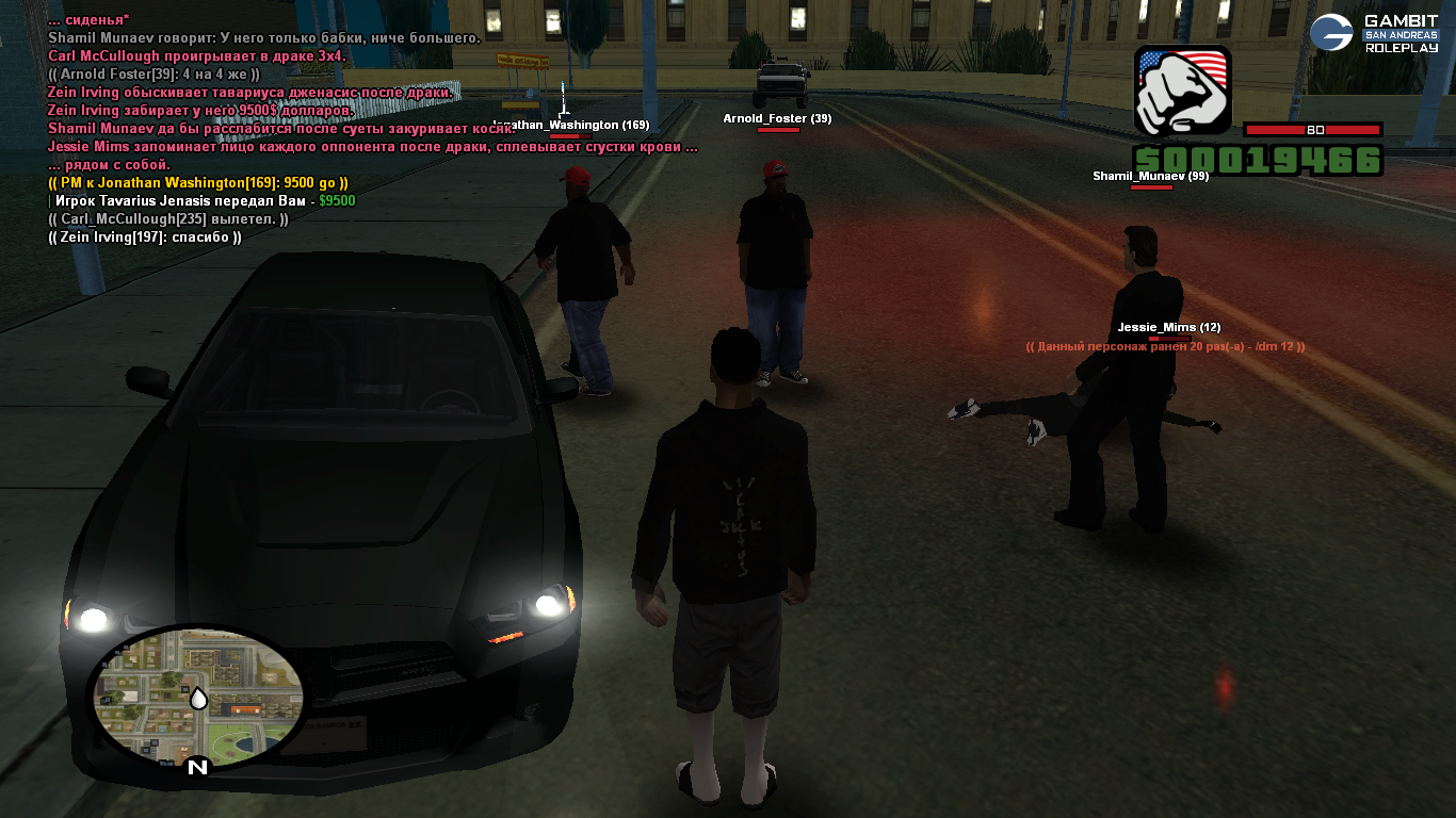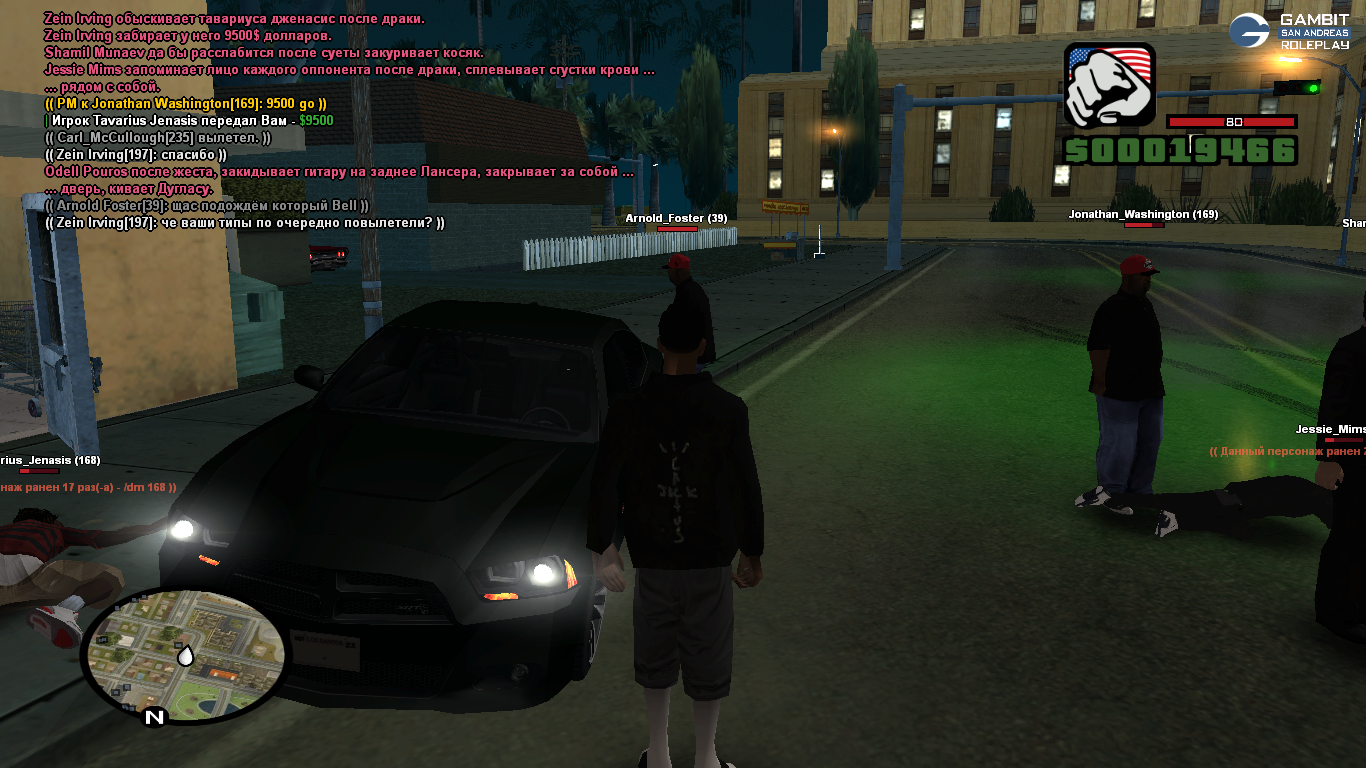 Я вместе со своим другом Jonathan_Washigton находился на районе. К нам без всякой причины начали приставать вышеуказанные игроки. Поскольку наши силы были не равны, я решил отъехать, чтобы собрать своих товарищей — Shamil_Munaev и Arnold_Foster.