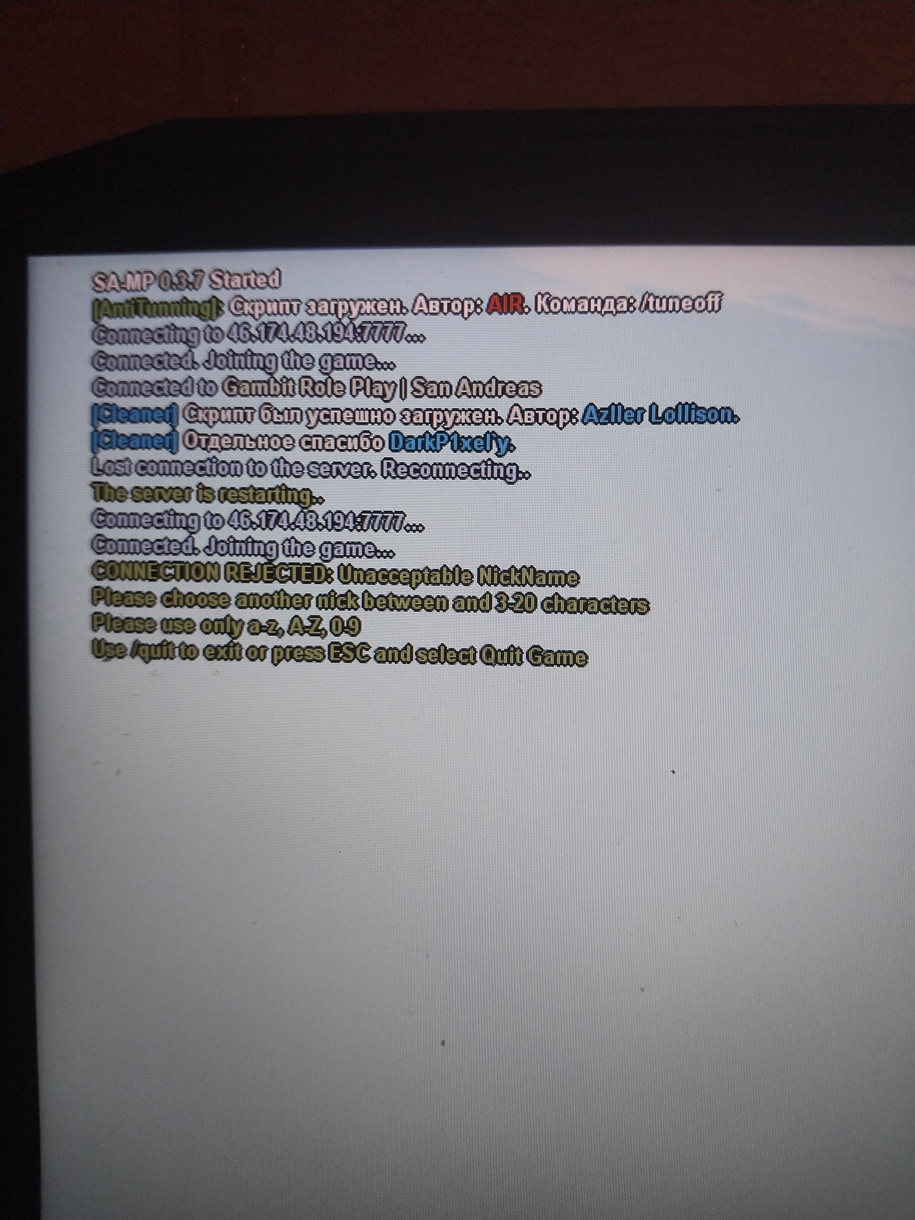 Облазил все форумы и прочее, ответа так и не нашёл. Если вкратце, то у меня нет никаких новых скриптов в сборке, со старыми я играю наверное года три как. Недавно "мастера" из конторы очень нехороших людей ростелеком поменяли мне роутер, и теперь выдаёт вот такую ошибку при заходе. Пинг по кд скачет, хотя при старом роутере всё было нормально. Прошу помощи, так как больше её просить не у кого. На остальных серверах точно так же.