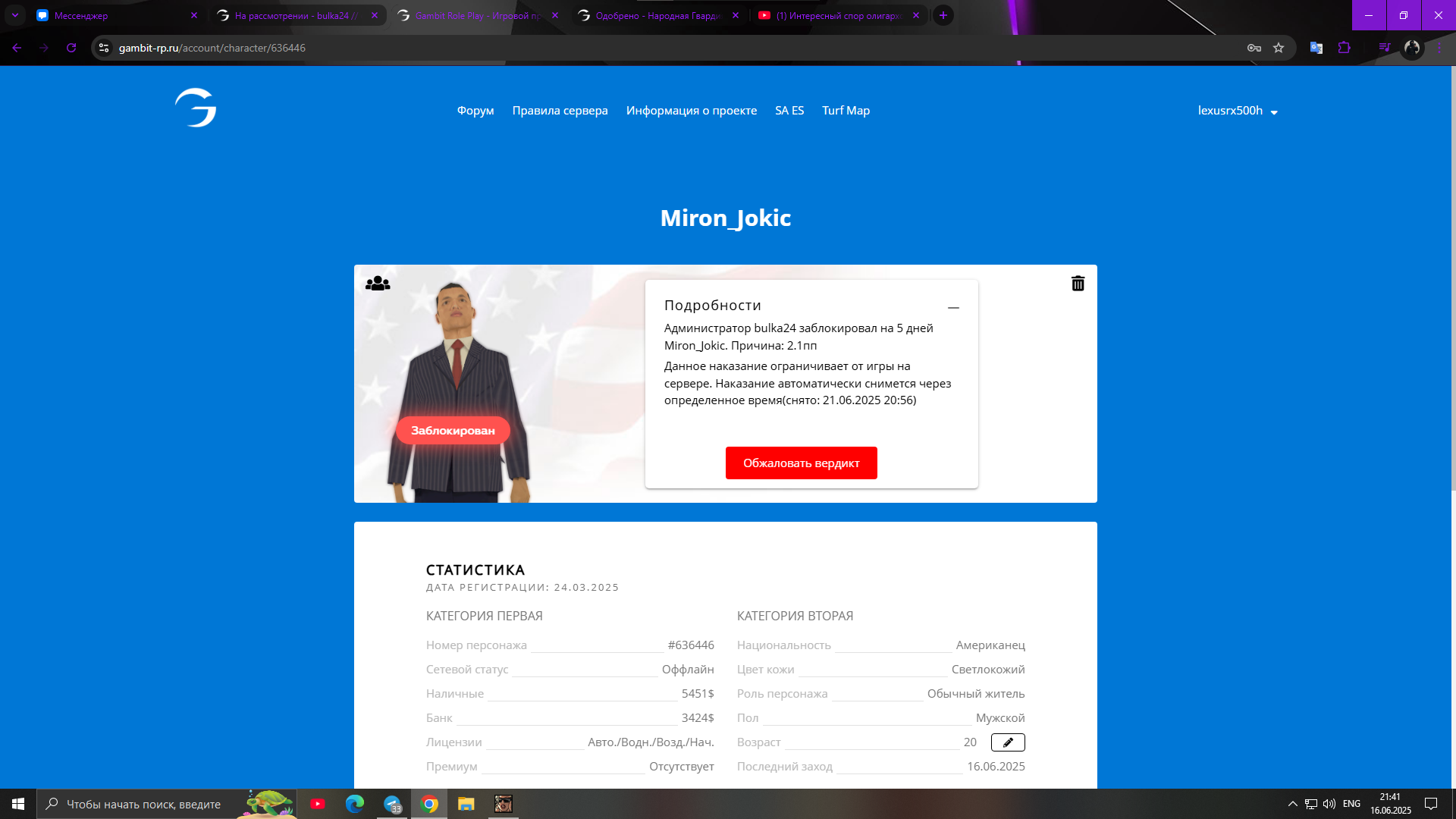 Ссылка на доказательства наказания/нарушения: У админа есть