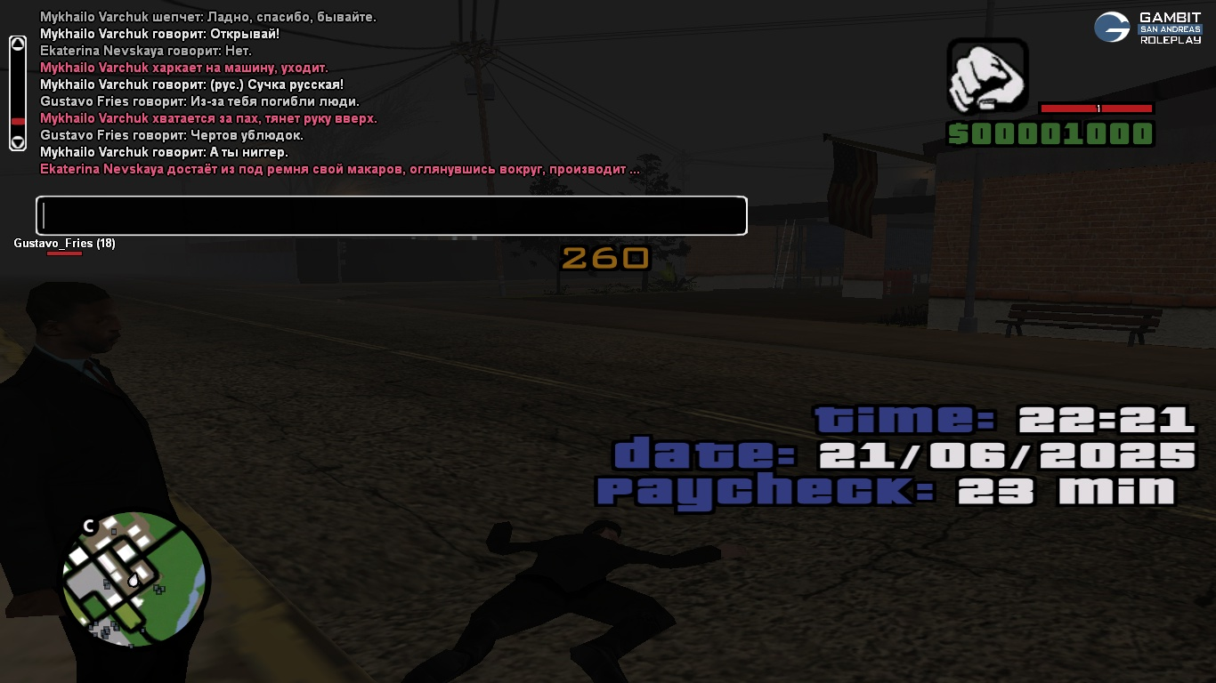 Суть жалобы: Дмитрий - 2.3, стрельба без отыгровок, дм зз, неотыгрыш ранений. Убивает в баре при куче свидетелей за то что запрыгнул на стойку в ходе конфликта, при этом не кидая никаких отыгровок, в итоге помирает и ничего не отыгрывает, никаких последствий. Еще использует сайлент убивая меня за стенкой, но я это не записал. Потом прибегает их бармен и грабит меня во 2 стадии. Екатерина - ДМ