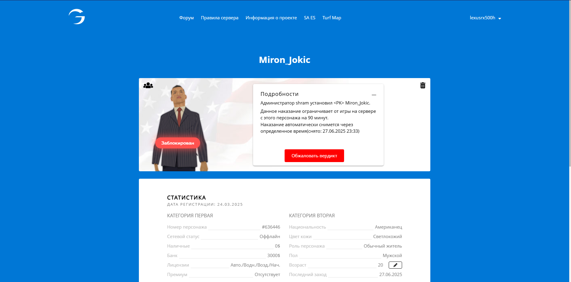 Дата и время наказания/нарушения: 27 Июн 2025