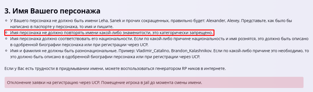 • Имя персонажа не должно повторять имени какой-либо знаменитости, это категорически запрещено.
