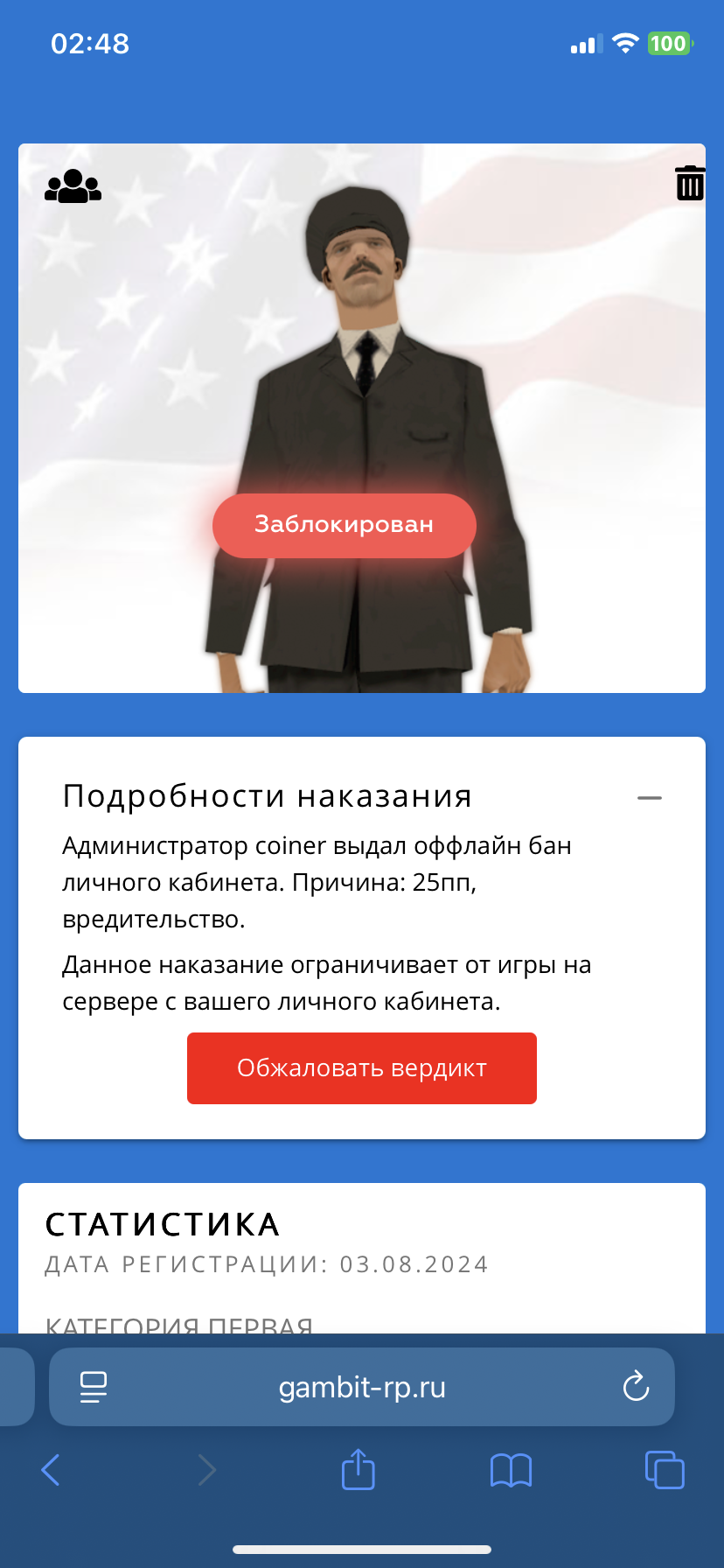 Суть жалобы: Выдал бан лк, за что? Какое вредительство?