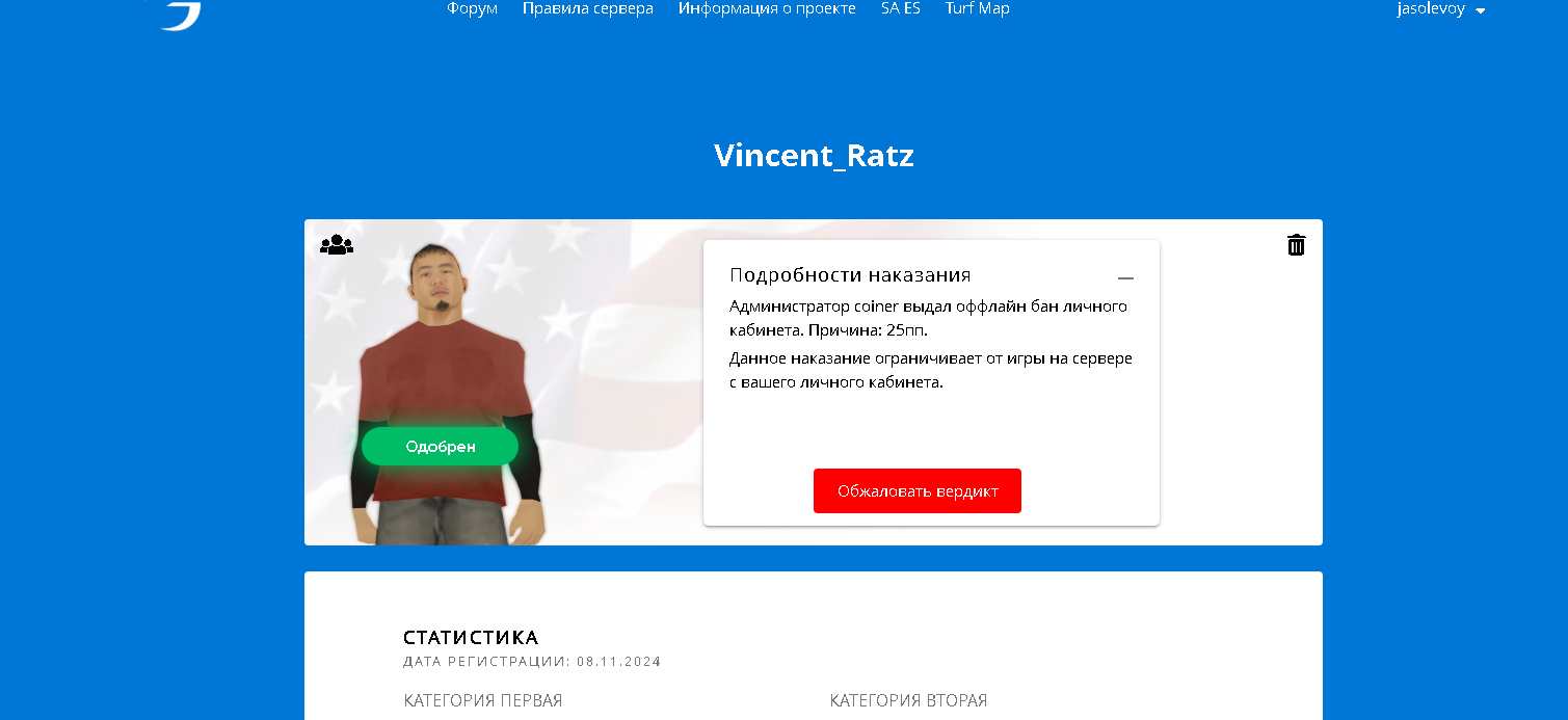 Суть жалобы: какова хуя друзья, это второй лк у меня за всю жизнь, первому почти 5 лет, там все персонажи перебаненны, я на этом лк хуеву кучу времени отыграл и только щас бан получил, ну зачем ваще?