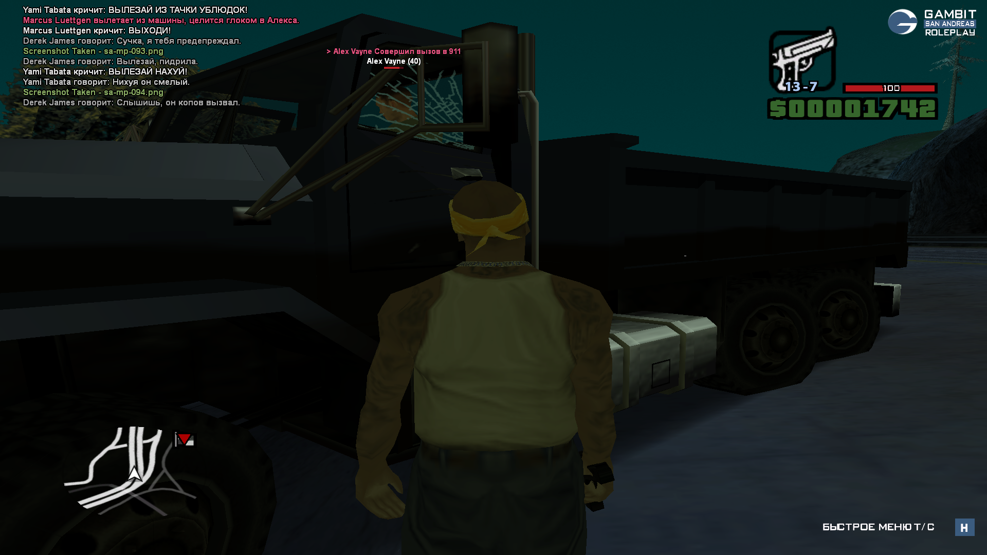 Вот же, чутка разъяснений, " Если это не отпугнёт грабителей, то и есть нашего водиллу, их действия расцениваются как power gaming, мы ждали около 40 секунд пока он выйдет из машины, но вместо требований под дулом пистолета он сделал /call 911.