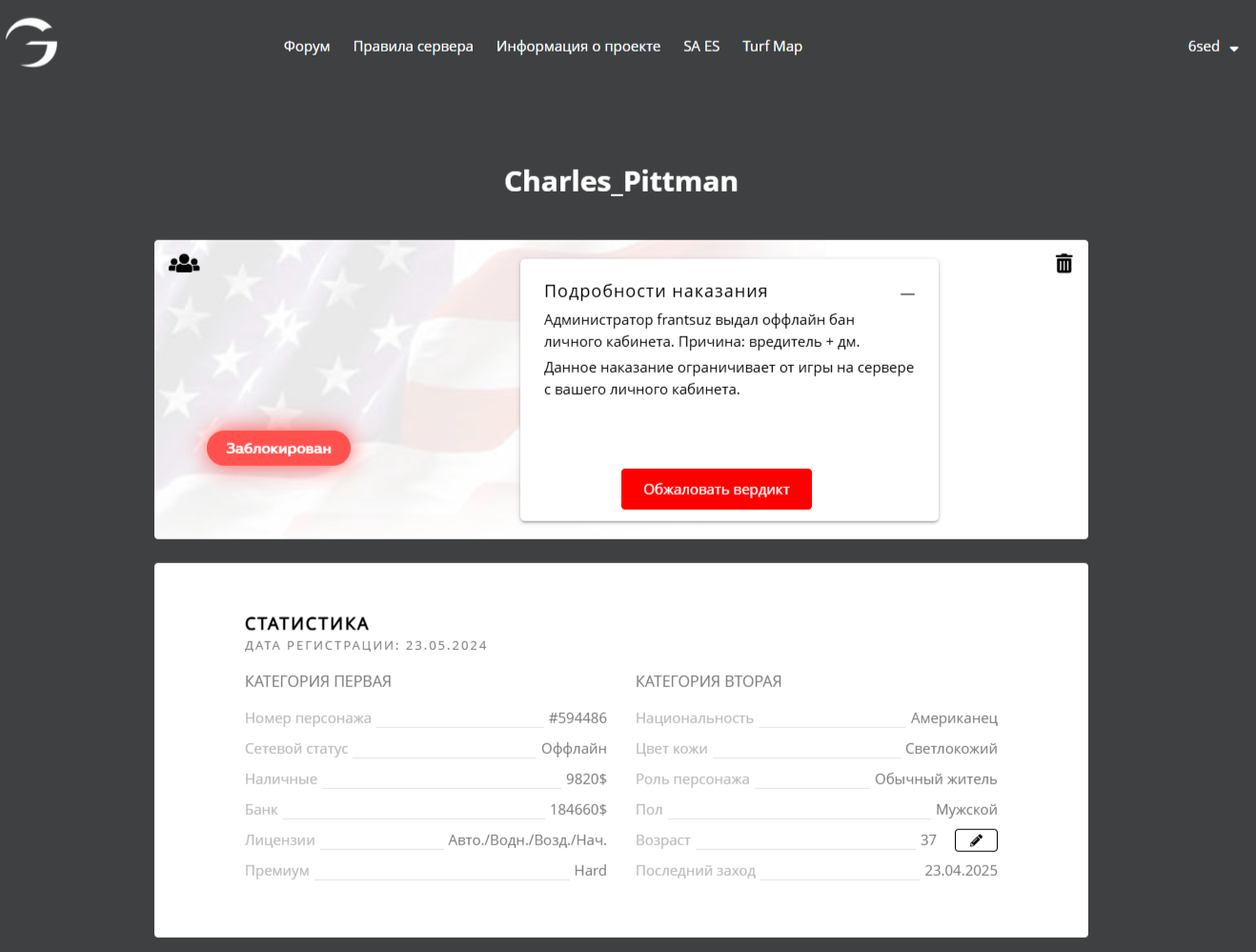 Суть жалобы: Блокировку ЛК получил ещё 3 месяца назад, за дело. Репутация вредителя висела на мне ещё давно, которую мне никак не хотели снимать, даже когда я играл без нарушений. ДМ был, но я очень и очень сожалею, что решил разъебашить спавн в лс. Очень хочу получить амнистию, согласен на обнуление персонажей, давно не играл на проекте, хотелось бы и РП немного поиграть. Вину признаю, каюсь... Дайте поиграть мне чут чут немного