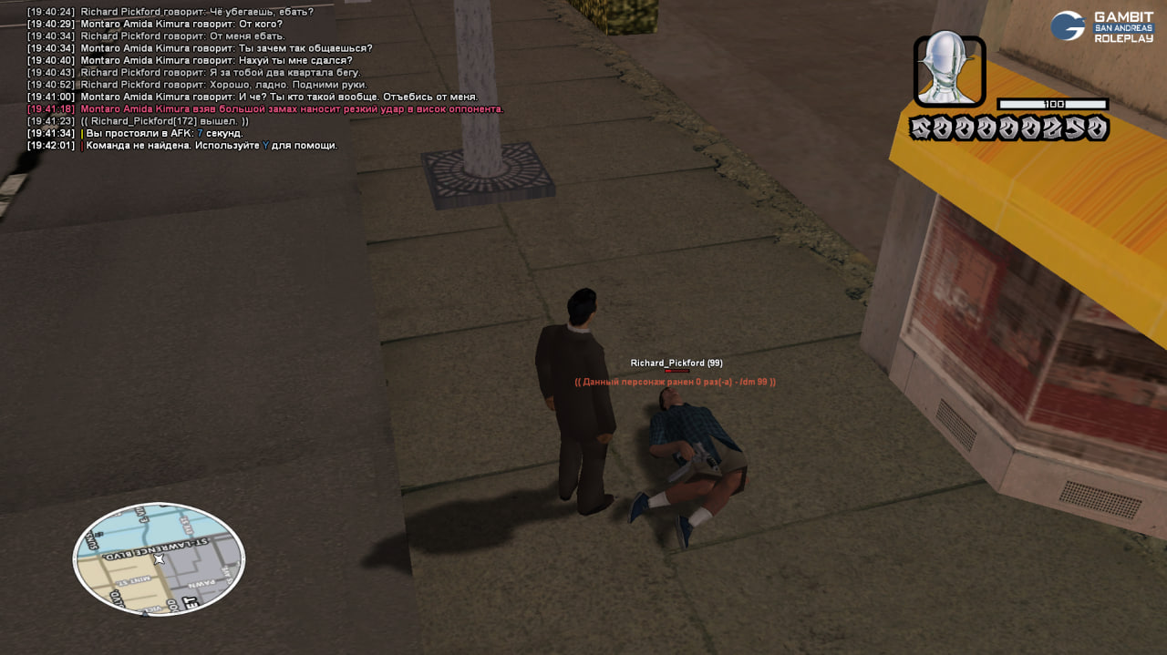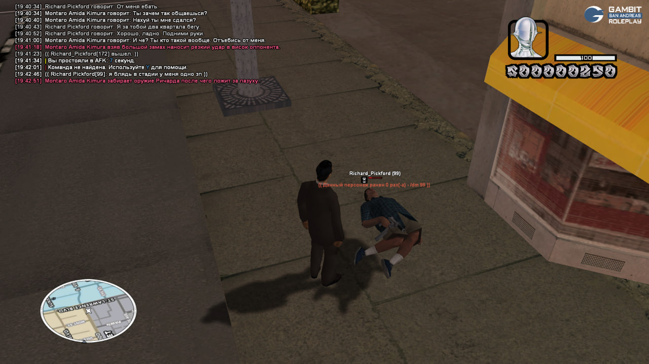 Суть жалобы: Побежал со спавна на работу, вижу за мной бежит чел. Останавливаюсь он начинает мне пиздеть типо хули я от него убегал, хотя впервые его вижу. В итоге я опять начал убегать, вижу он бежит за мной, останавливаюсь. Он тем временем скроллит тек-9 к слову без отыгровки, я нападаю на него с отыгровкой при виде ствола, он говорит за какое то ПГ, но лол, он даже не успел навести на меня этот ствол. Он полностью отказывался его передавать, потом приехал его друг и убил меня, после чего отлетел. Прошу начислить мне тек-9 который я забрал, я кидал все отыгровки, на скринах видно. В то же время он просто скроллит ствол без отыгр и после того как я его уронил начинает плакать что ничего не отдаст