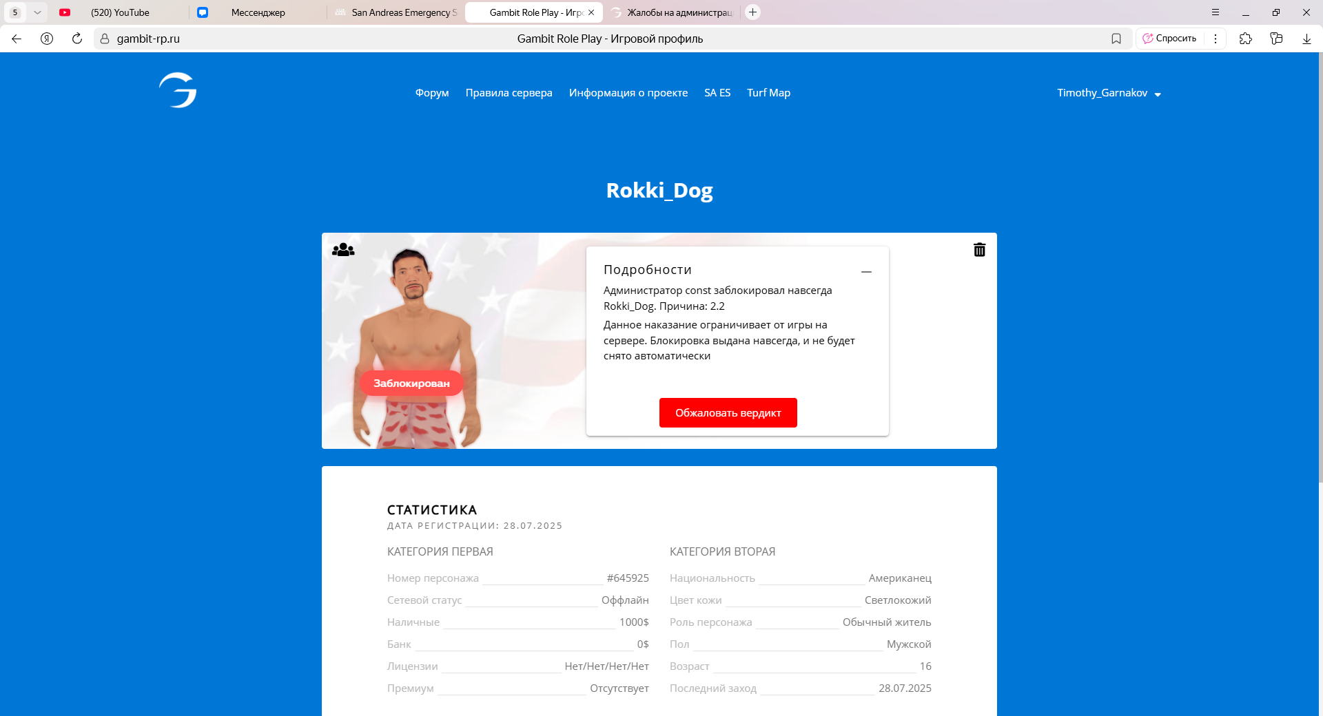 Суть жалобы: Узнать за что бан. ведь я откатываю все свои действия.