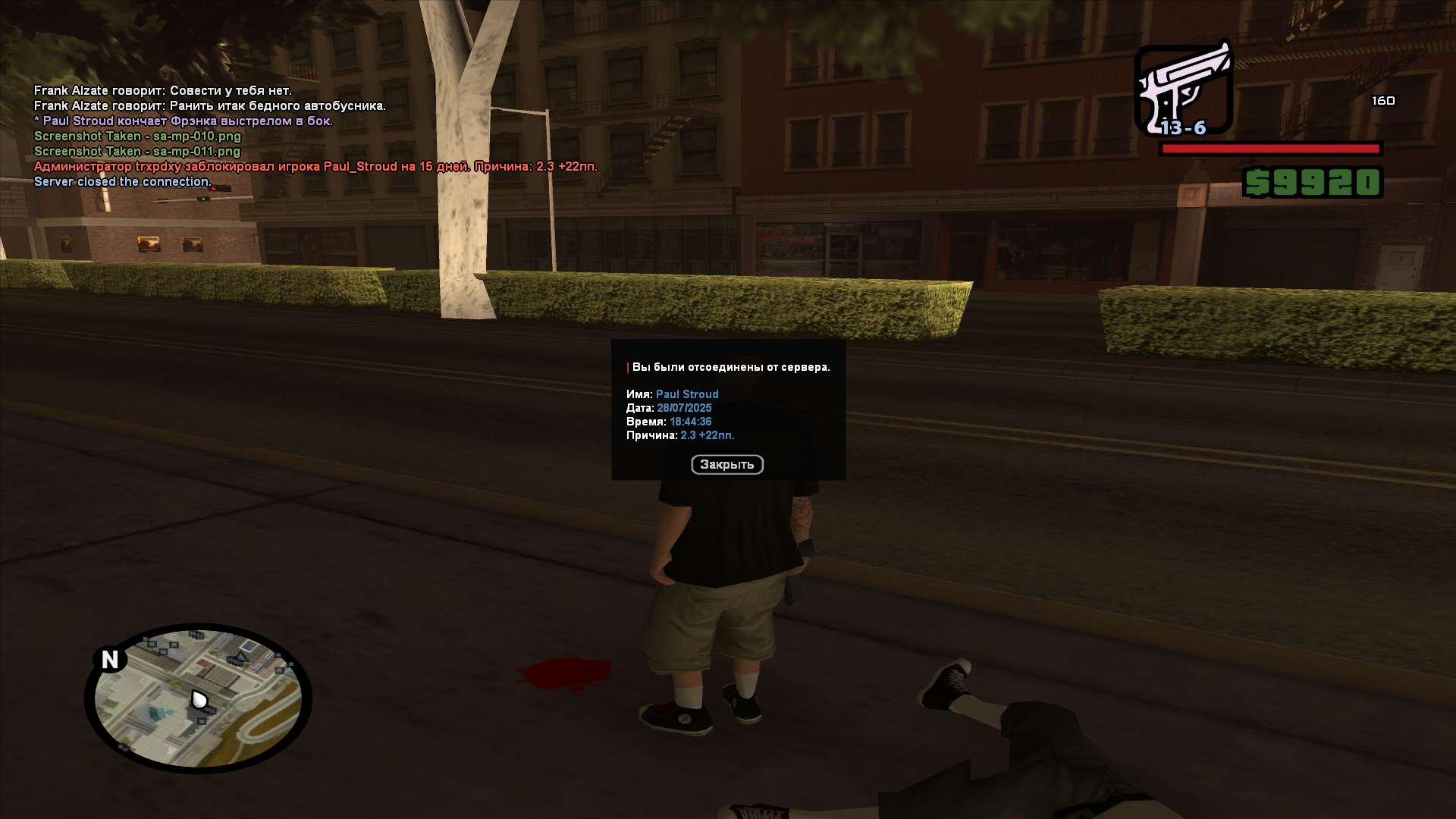 Ситуация: после того, как в меня врезался водитель автобуса, я устроил с ним словесную перепалку, где услышал неуважительный тон, из-за чего поехал вслед за ним. После этого он принялся яростно вызывать полицию, за что я начал с ним драку, а он начал убегать, ввиду чего мне пришлось применить оружие. Его дальнейшие действия (оскорбления под дулом пистолета) - считаются за ПГ. Игрок был убит не без причины. Ниже прикладываю скриншоты в опровержение 22пп.