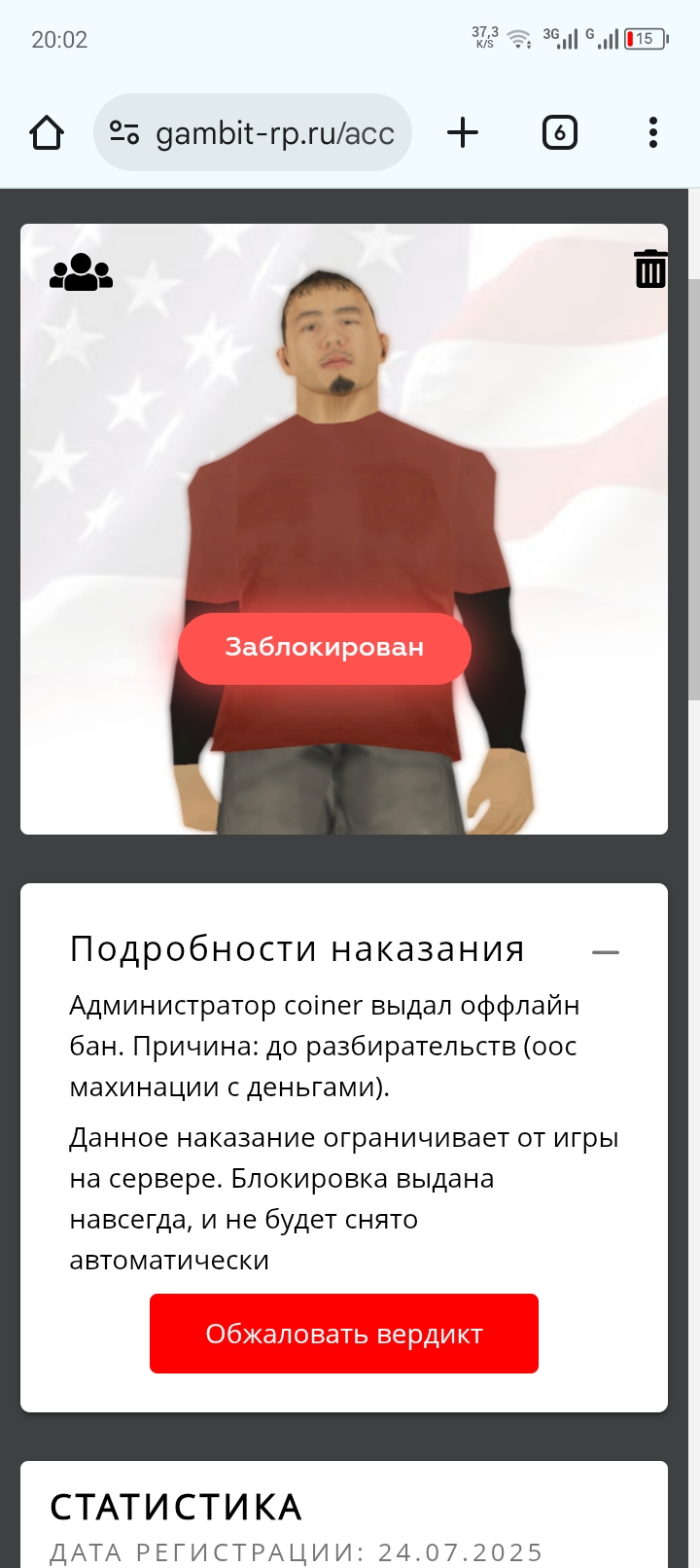 Дата и время наказания/нарушения: 29 Июл 2025