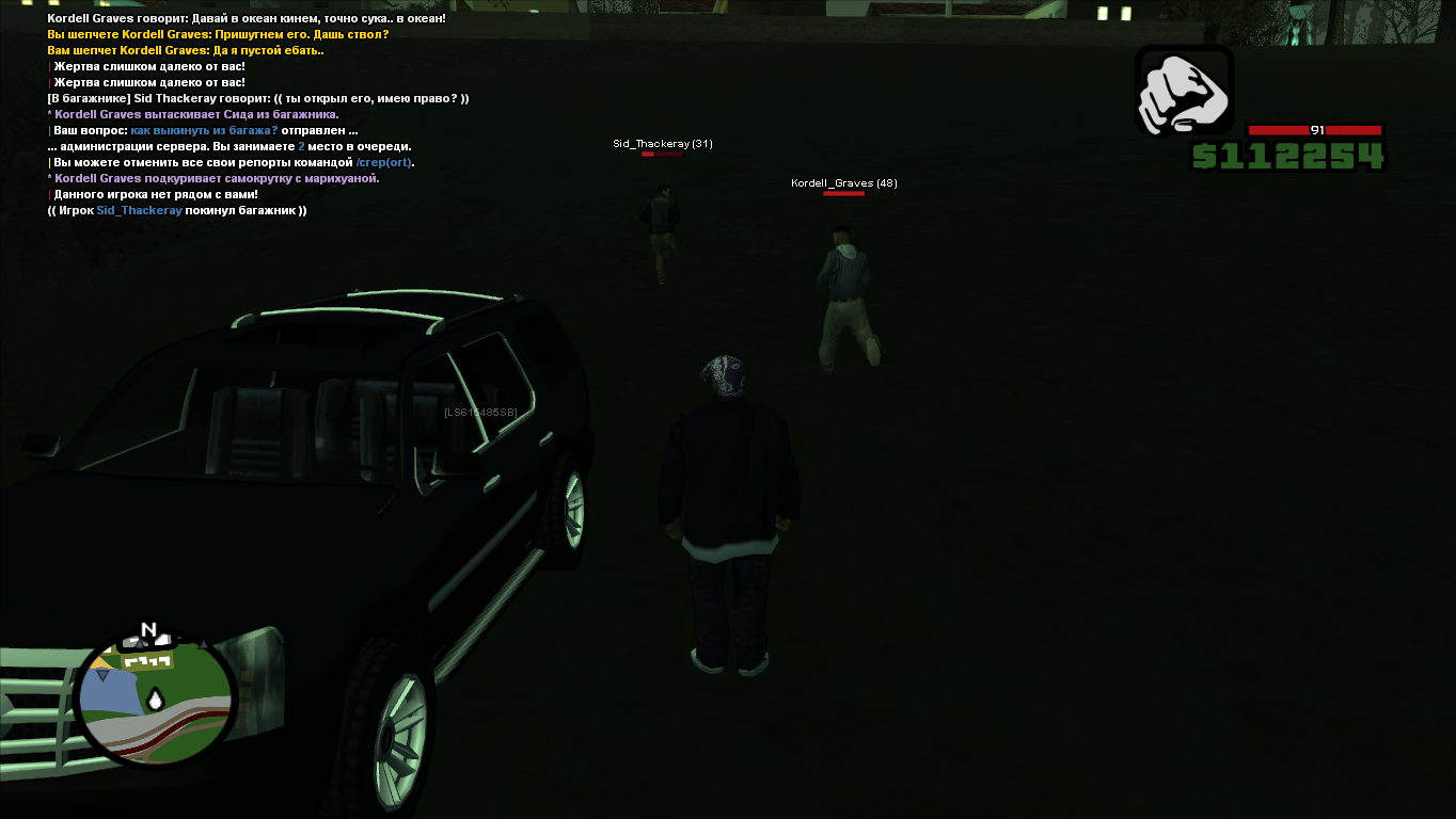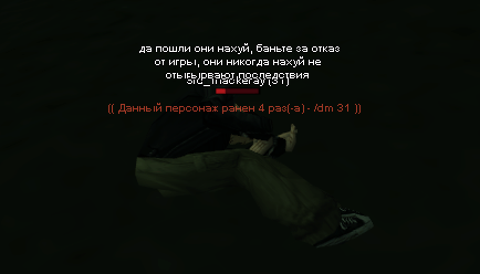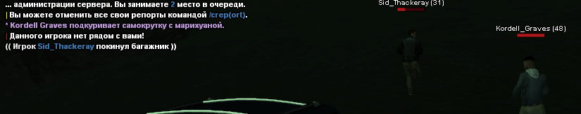 Суть жалобы: отказ от игры, меня похитили а в багажнике я оставил подожённую сигарету, по идее в теории салон автомобиля может разгореться (учитывая что она там была уже долгое время) а человек просто проигнорил сказав что в /do что кожа не может гореть. хотя это не так.