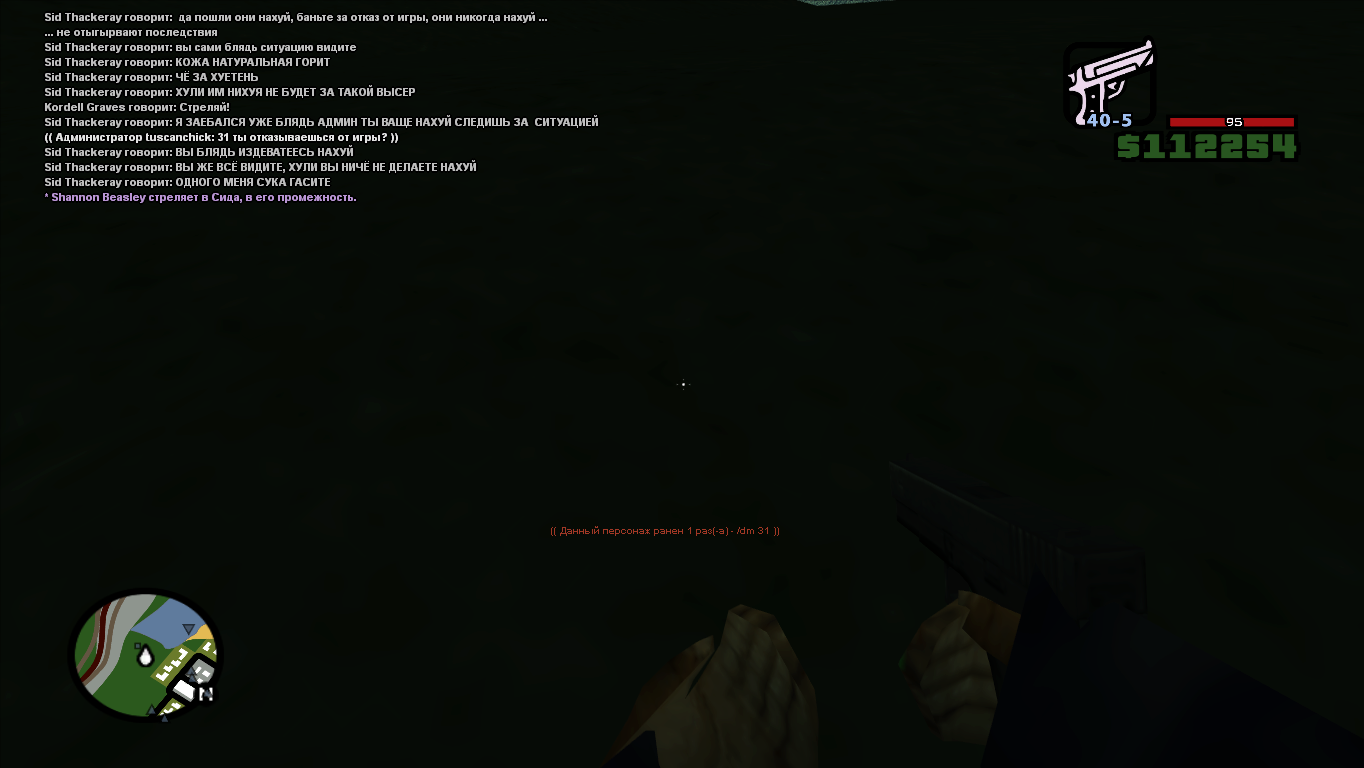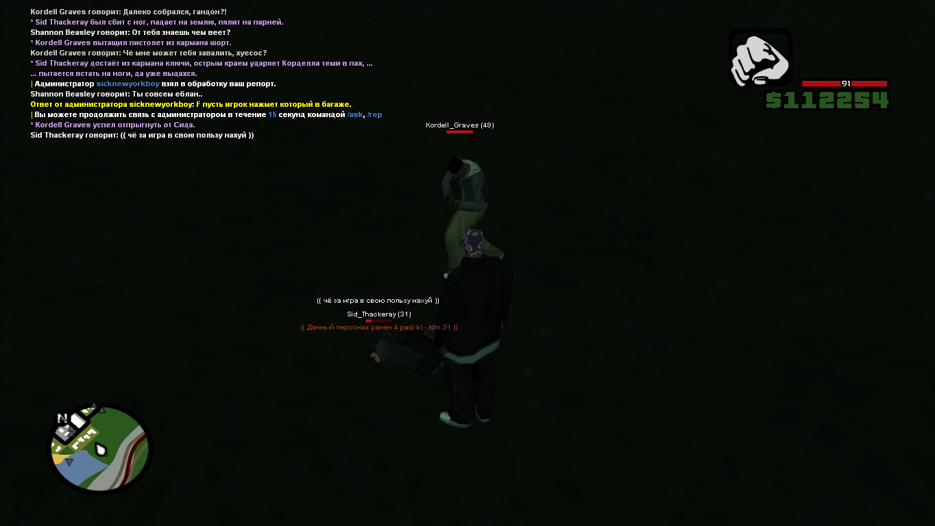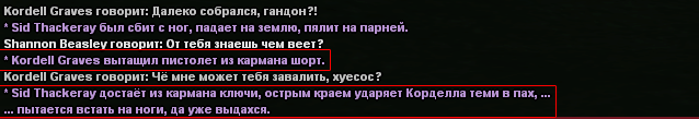 когда меня повалили я в таком положении ударил корделла в пах КЛЮЧАМИ (это адски невыносимая боль) а он просто проигнорил и не отыграл последствий и под конец обоссали мя вдвоём и шотнули.