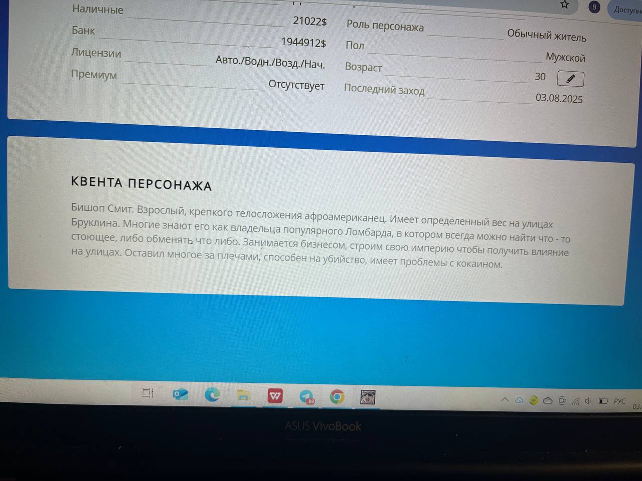 Ехали с парнем на автомойку, там попали в ДТП с водителем. Водитель вышел начал просить деньги, вроде угрожал. Я - сидел в машине. Мой товарищ набил морду наглому водителю (Без оружия, просто системная драка с отыгровками.) После чего !МНОЙ! был вызван /callw. Полиция приехала быстро, я дал газу - похоже что он меня не запомнил. Мой друг тоже смог скрыться. После чего я был у себя на складе, мы в троем были внутри здания (Нас уже преимущественно больше). Тот кореш, который подрался и скрылся Иван, он вышел из ломбарда и сразу вернулся внутрь. Тут за ним забежал полицейский, который скрутил его, жестоко обращался и возился на земле, не посмотрел абсолютно вокруг. Когда офицер поднял уже Ивана, я закрыл основную дверь с отыгровкой, обошел закрыл дверь дополнительную (ВСЕ ПРОИСХОДИТ В ОДНОЙ КОМНАТЕ У МЕНЯ ДОМА, Я НЕ ПЫТАЛСЯ НИЧЕГО СКРЫТЬ). Сначало написал отыгровку, что достал оружие и тд, после чего открыл стрельбу сзади по плицейскому - который пытался открыть дверь. После чего я написал отыгровку что поднял своего друга, так же рядом с данным офицером и за руку потянул друга к выходу, после чего закрыл свой дом с трупом на ключ. После мы пытались выехать из города, чтобы лечь на дно. У меня в машине был комплект инструментов и я с отыгровкой взломал наручники Ивана. В заключении хочу сказать, что играл честно, все отыгровки предоставляю. Нарочно спрятать какую то отыгровку я не пытался, убежать подальше или еще что нибудь. Просьба разблокировать аккаунт, пересмотреть наказание. ИС Причина убийства копа - это задержание и насилие в сторону моего друга, коп один - нас трое в помещении. Я играю тридцатилетнего негра бизнесмена, который способен на убийство.