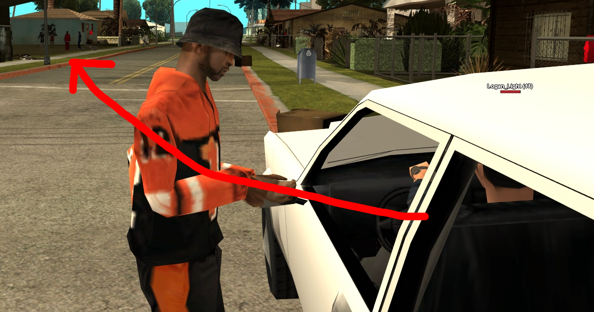 я увидел чела на гэнтоне, который сидит в своей машине. подбегаю к нему. типо такой. здарова, че как дела? хотел предложить наркотики. но об этом потом. он мне говорит, что до него докопались мои соигроки и он хочет им отомстить. напрямую говорит, что "хочу отомстить, но ствола нет". ясен перец щас он поедет, найдет ствол и будет мстить)