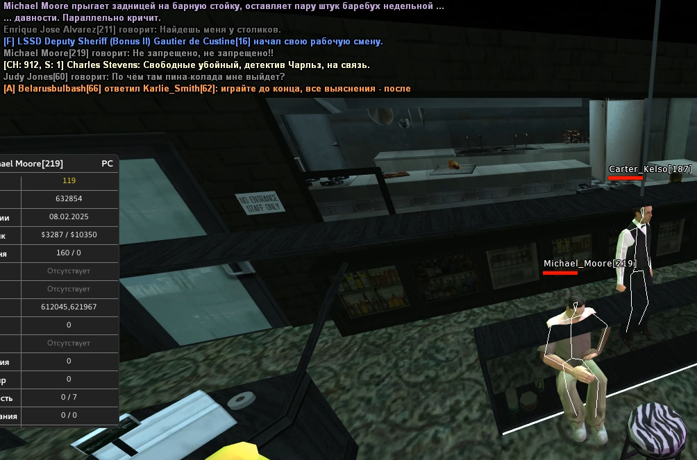 Суть жалобы: В клубе требовал возвращение средств за плохое обслуживание (обычная ролевая ситуация). В квенте написано что персонаж белый мусор, решительный и конфликтный. За 50 долларов удавился, пошел на единственный действенный способ кроме драки - вонь. Здравый смысл вполне себе имеет место, учитывая особенно факт того что прописано в квенте и принципиальность персонажа. В виду находчивости Майкл подсмотрел известный в США мультфильм Family Guy, где была подобная сцена в одном из эпизодов.
