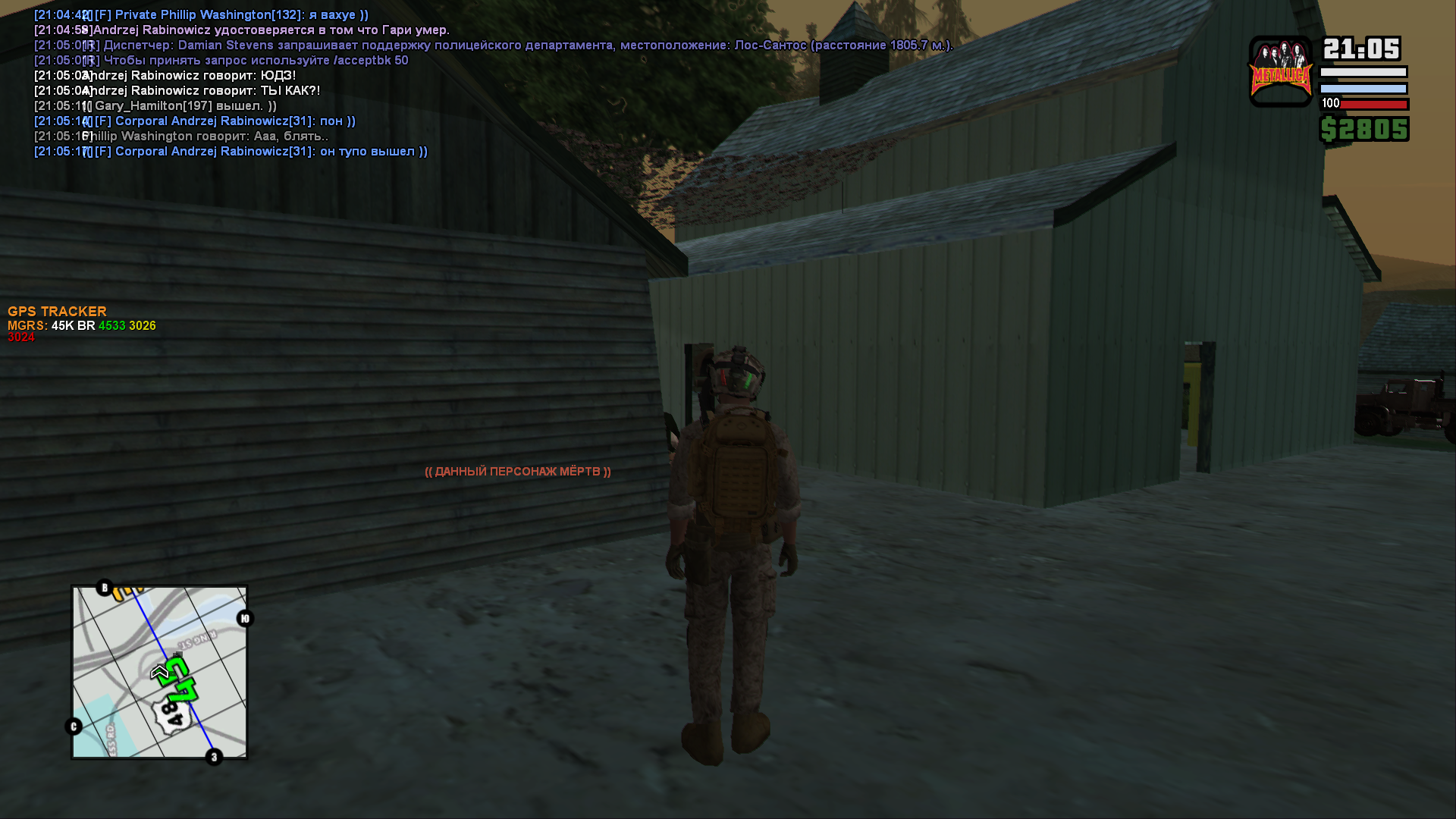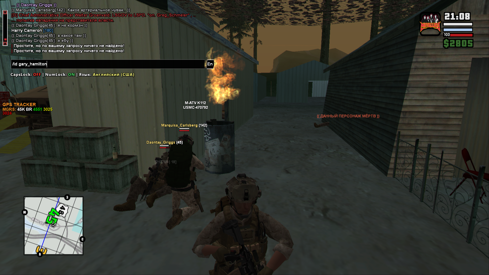 Суть жалобы: Спокойно худили на ПВД. Этот чел залетел к нам, и начал без отыгровок шманать. ОК, начали играть ранения, в итоге он просто оффается и не заходит в течении пяти минут.