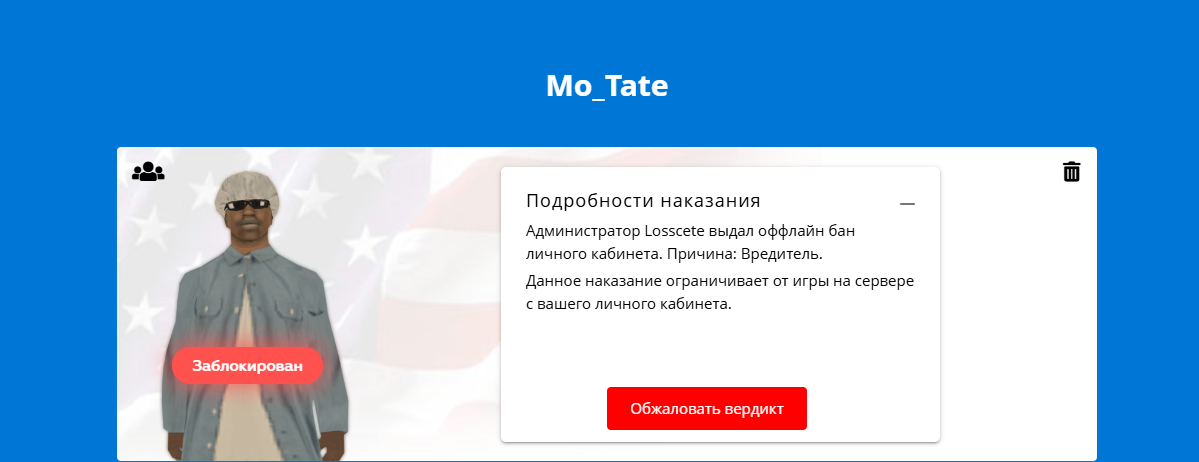 Суть жалобы: Приветствую еще раз, получил блокировку практически два месяца назад, в первой жалобе мне отказали, но я все же хочу добиться хотя бы какого-то разбана. Буду благодарен если мне пойдут хоть как-то на встречу, с любым предложением можно будет обсудить.