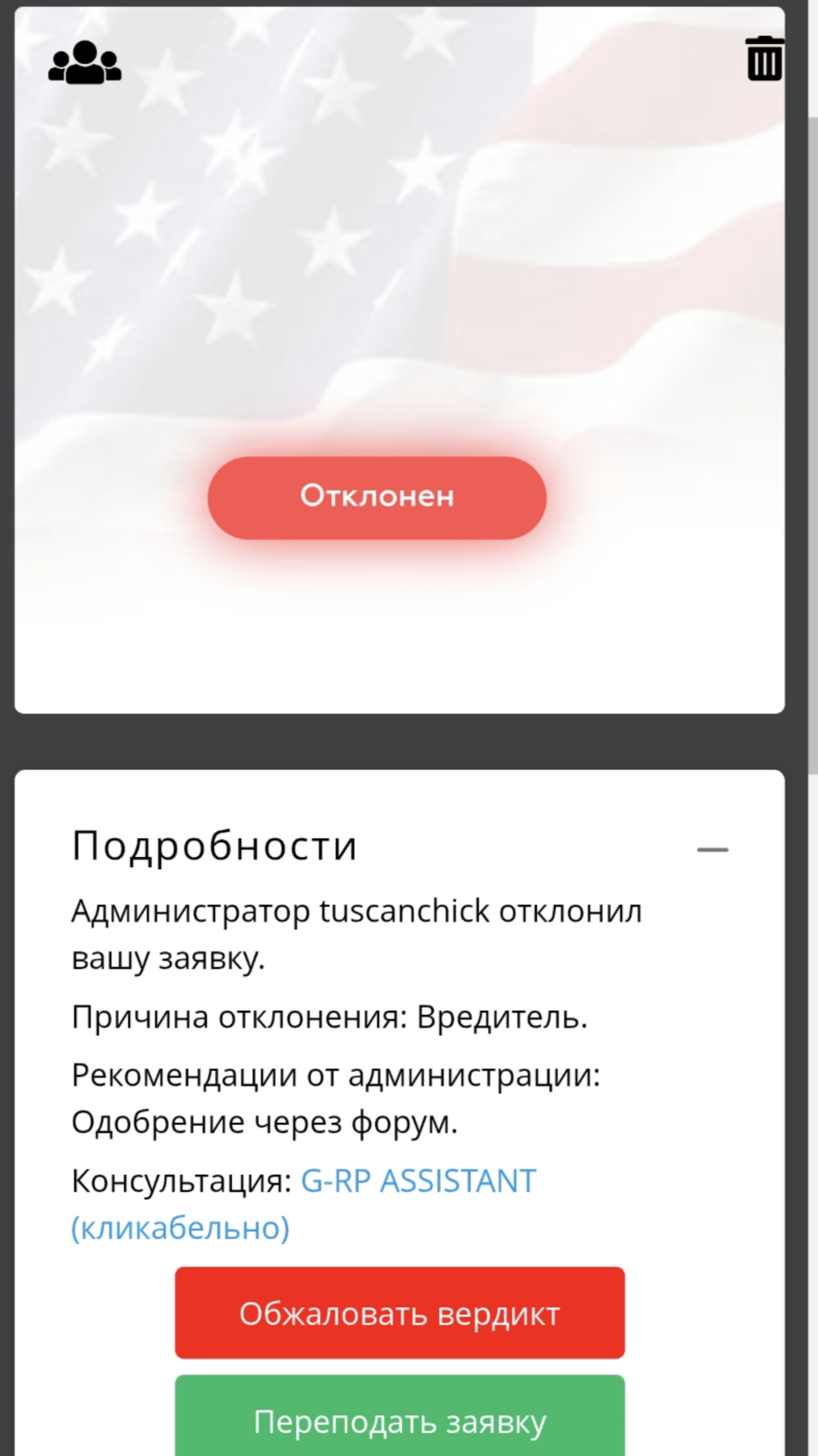 Суть жалобы: Отклонили персонажа по причине "вредитель", это мой первый персонаж, я не знаю, что делать