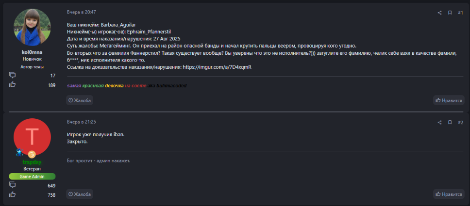 Ссылка на доказательства наказания/нарушения: https://imgur.com/a/7D4xqmR