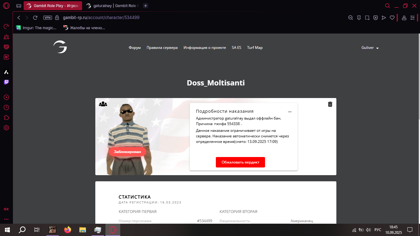 Ссылка на доказательства наказания/нарушения: https://postimg.cc/0rbWp8mG