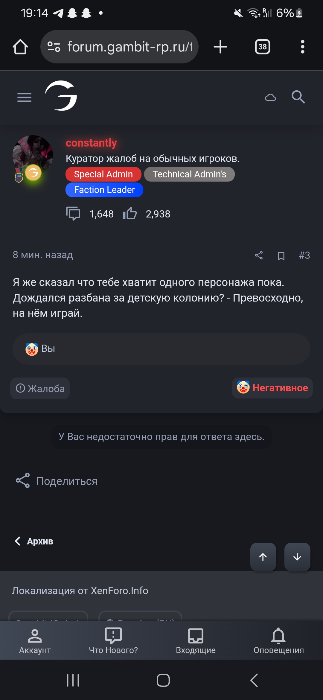 Суть жалобы: В чём проблема одобрить мне этого персонажа? Я хочу начать взаимодействие с фракой моего кореша, но с персонажа аутиста не могу, уже в другой фракции состою.